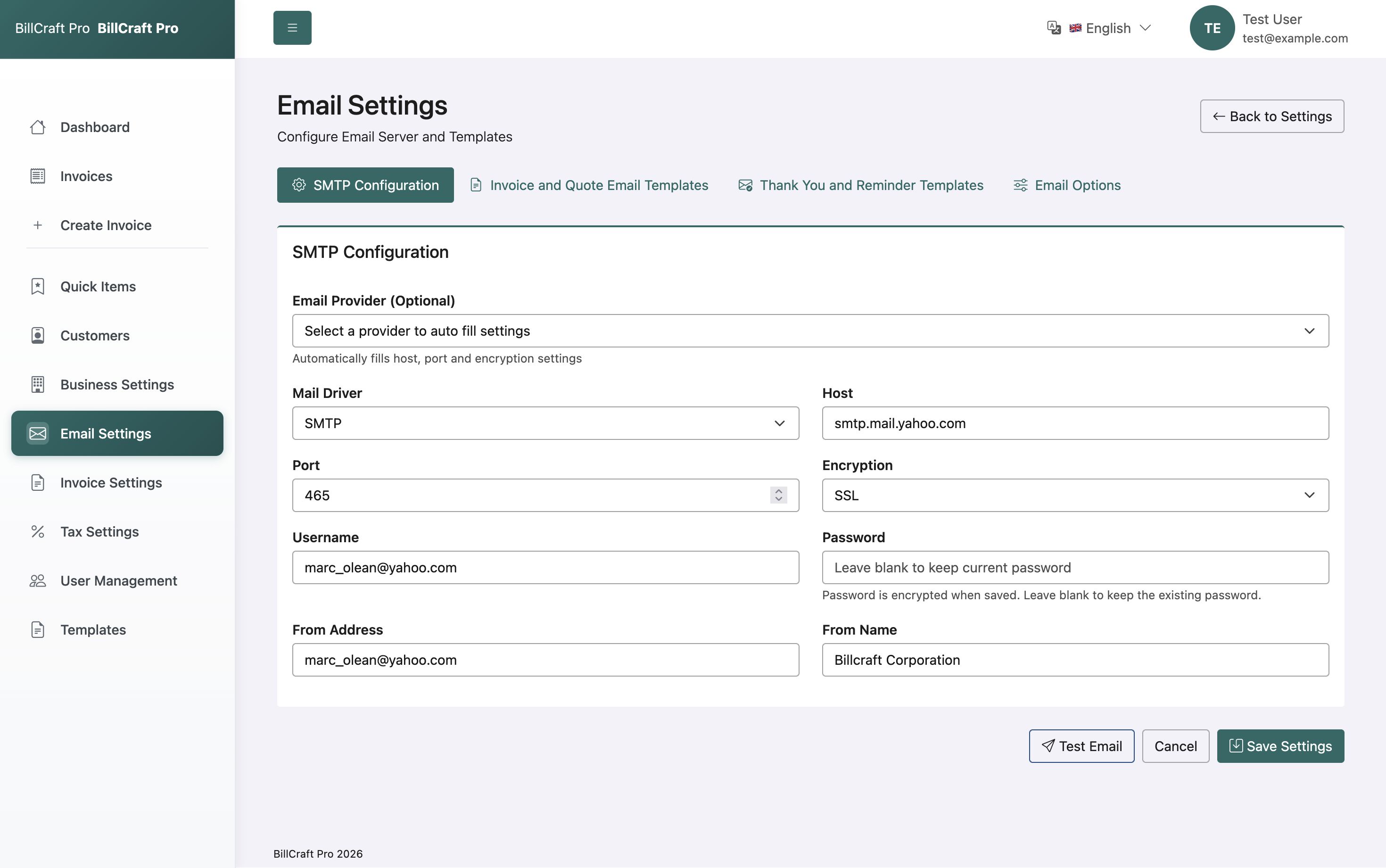 - Email/SMTP settings
