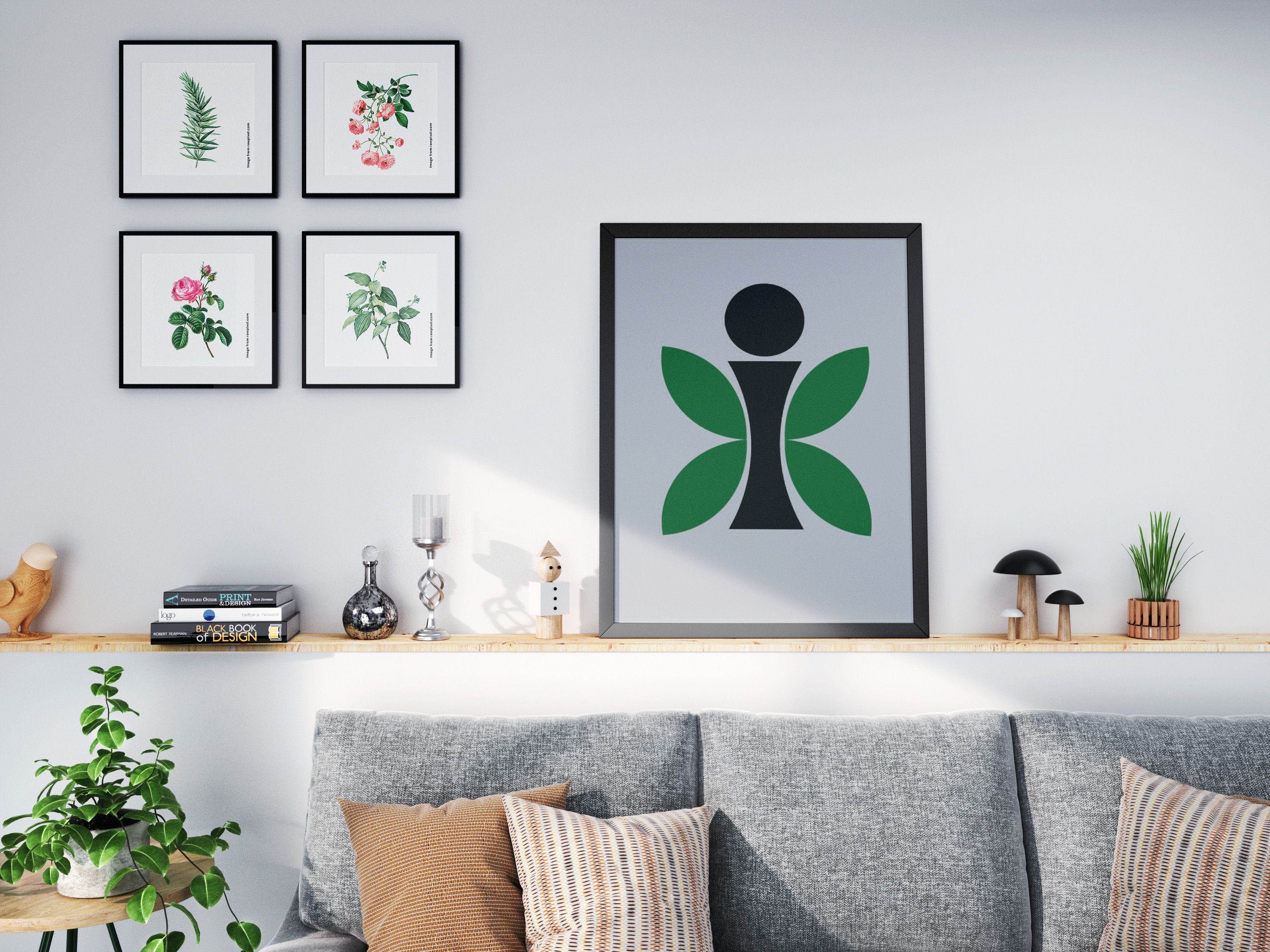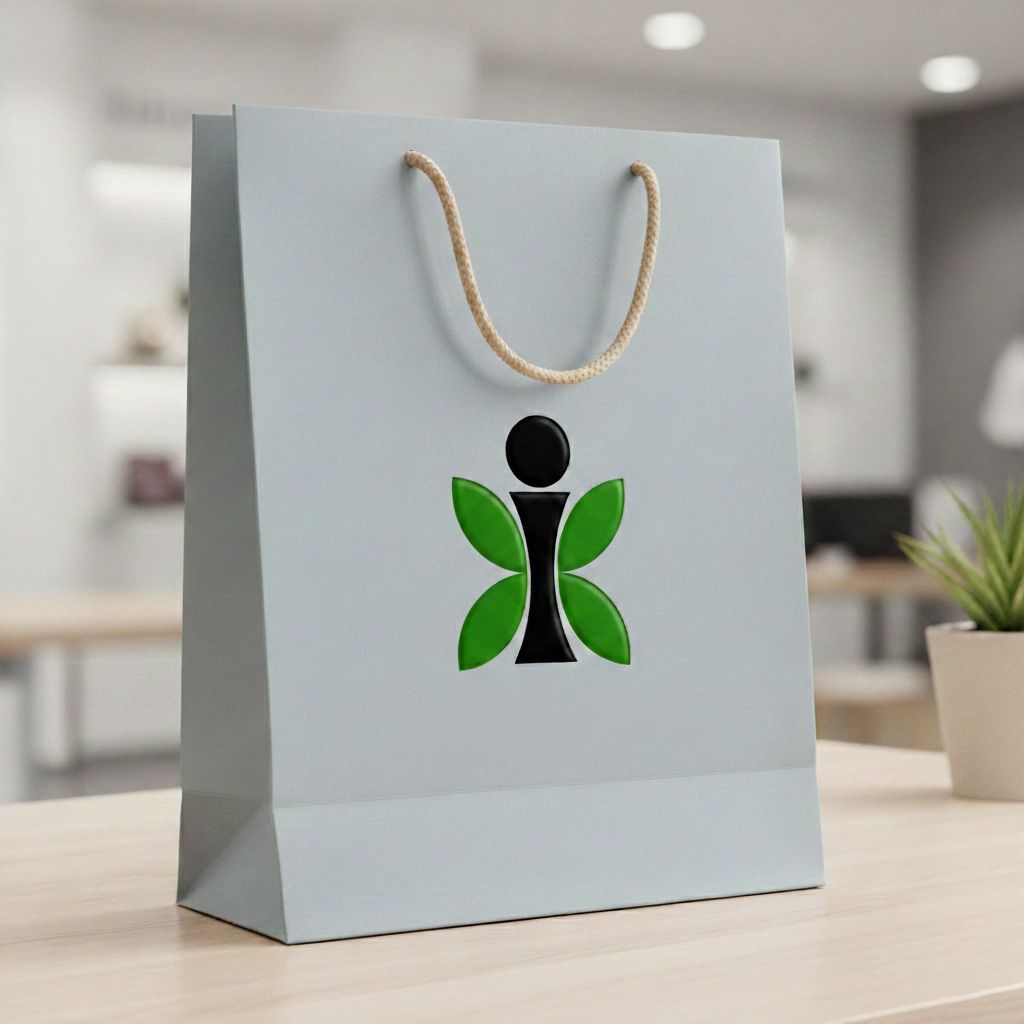 This modern and minimal logo represents a perfect balance between human identity, nature, and growth. The central abstract human figure symbolizes people, innovation, and leadership, while the green leaf-shaped elements on both sides reflect nature, sustainability, wellness, and organic growth. The symmetrical composition creates a sense of harmony, trust, and stability, making the logo visually strong and conceptually meaningful.