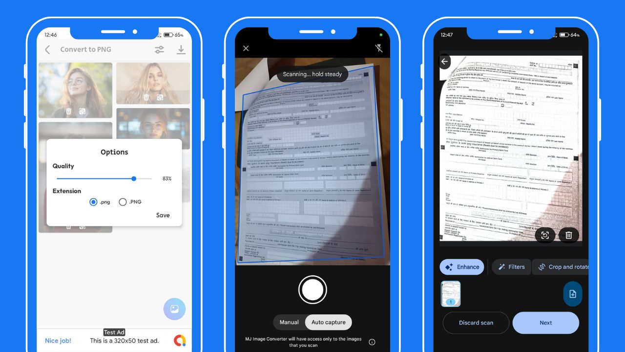 Our app provides a straightforward solution for converting images between popular formats like JPG, JPEG, PDF, PNG and WEBP.MJ Image Converter with AdMob Facebook Ads Android