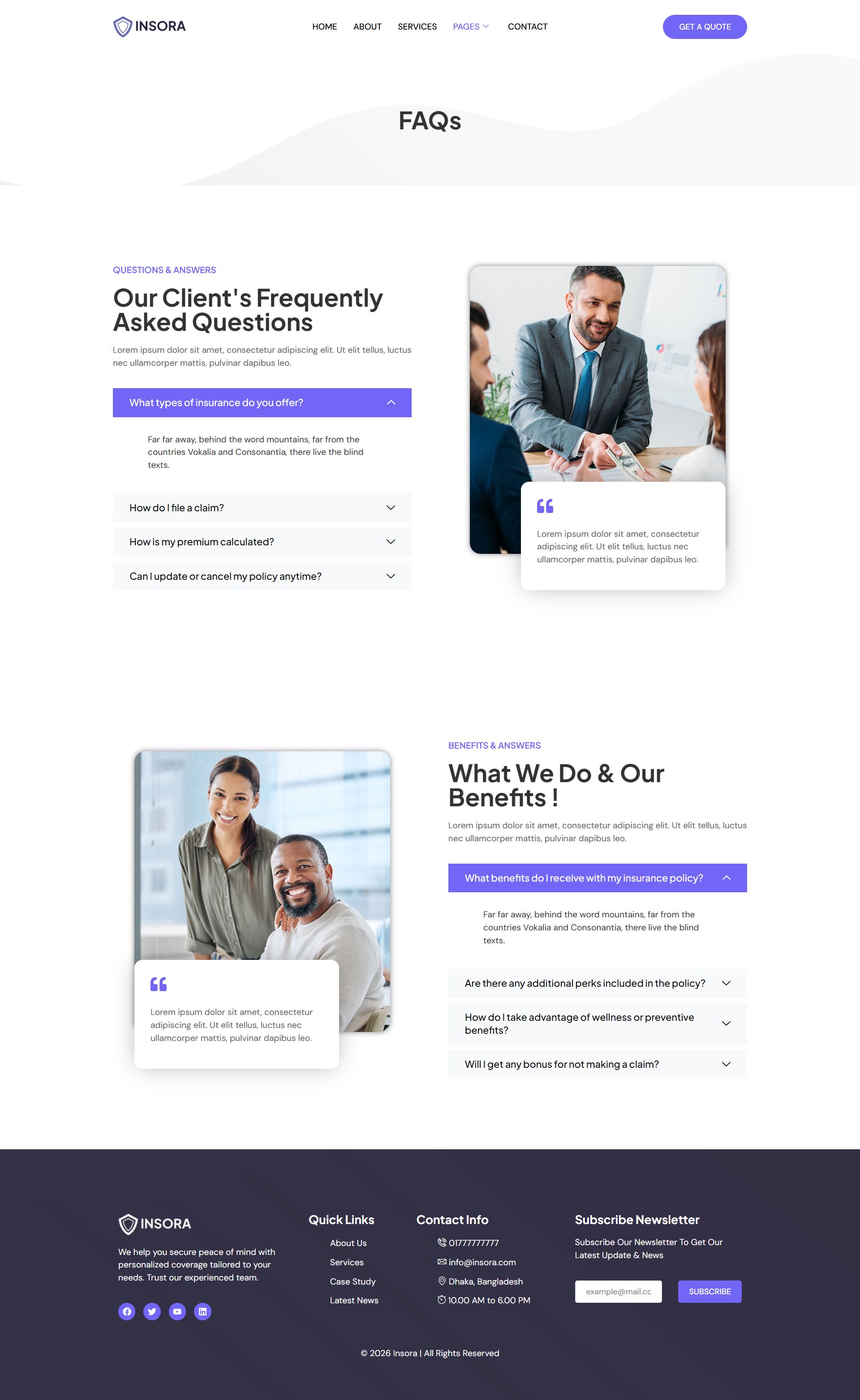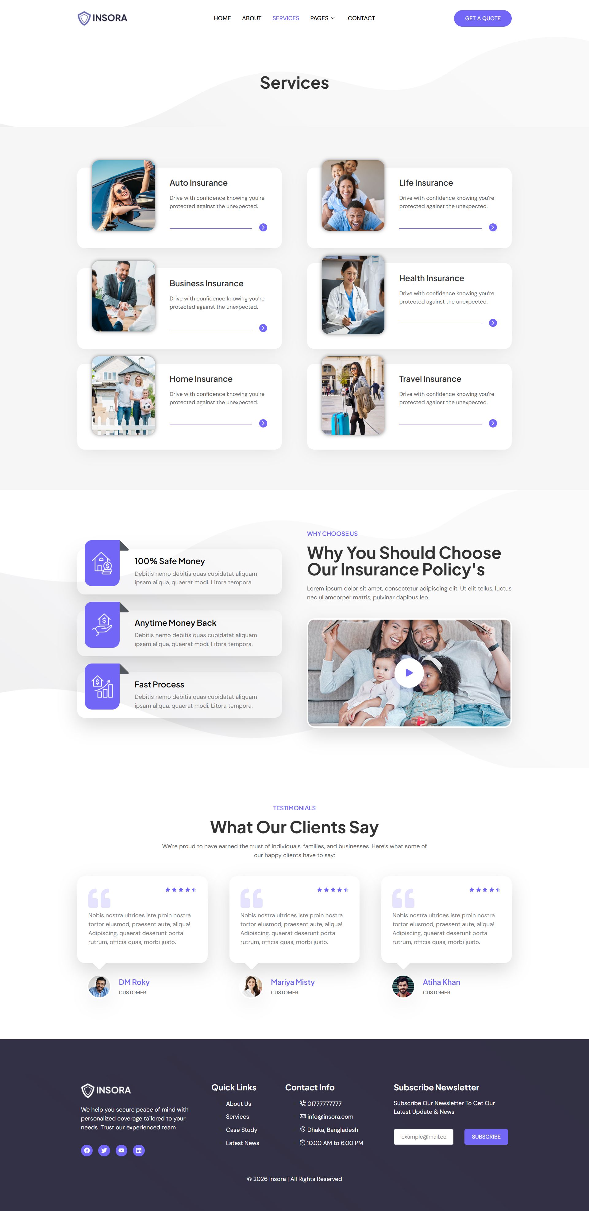 This template kit features a well-structured layout, trust-focused design, and conversion-optimized sections to help you present your services clearly and professionally. Whether you’re offering life insurance, health insurance, business coverage, or financial consulting, Insora delivers a polished online presence that builds credibility and confidence with your clients.