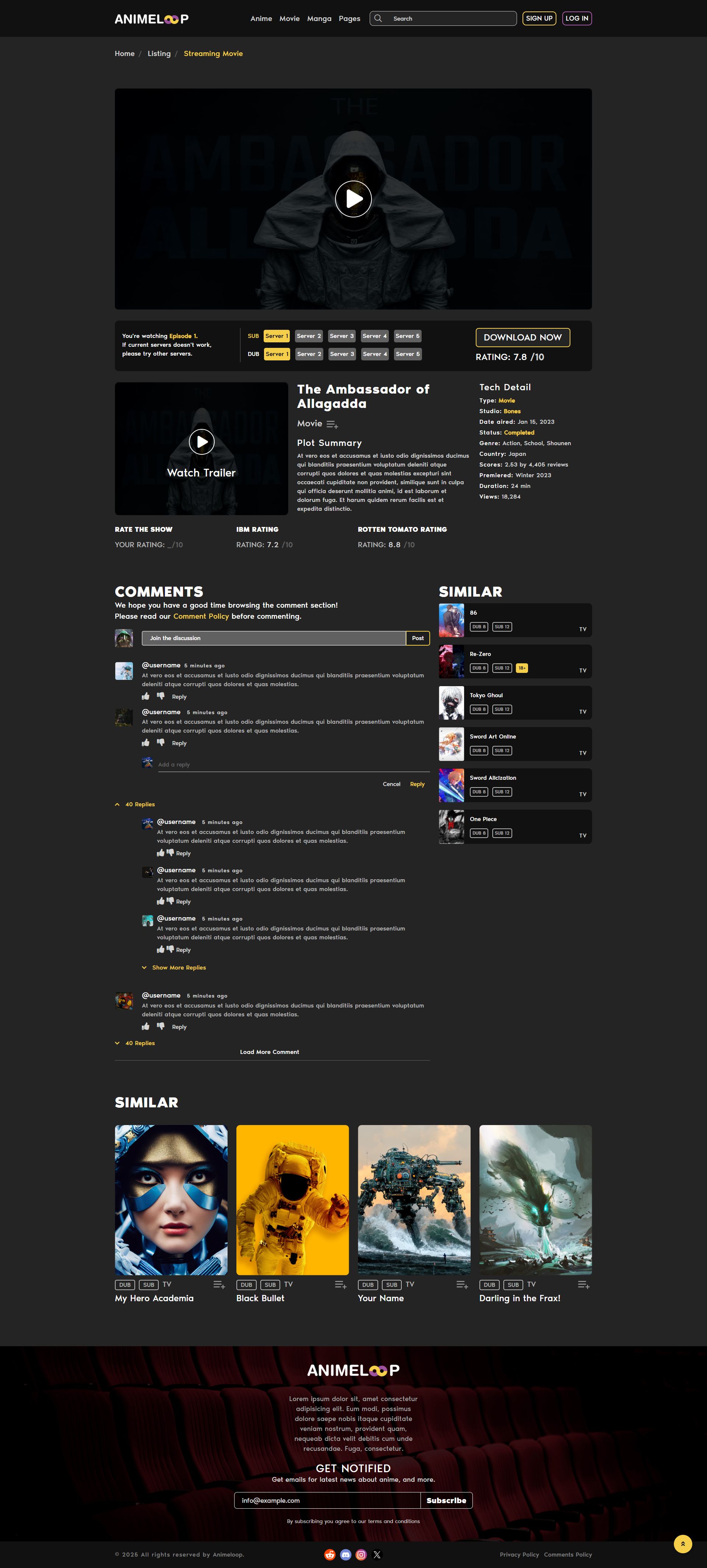 Responsive Anime HTML template for anime, manga, movies and video streaming sites. Built with Bootstrap, fast and mobile-friendly.Anime Loop – Anime And Movies HTML Template