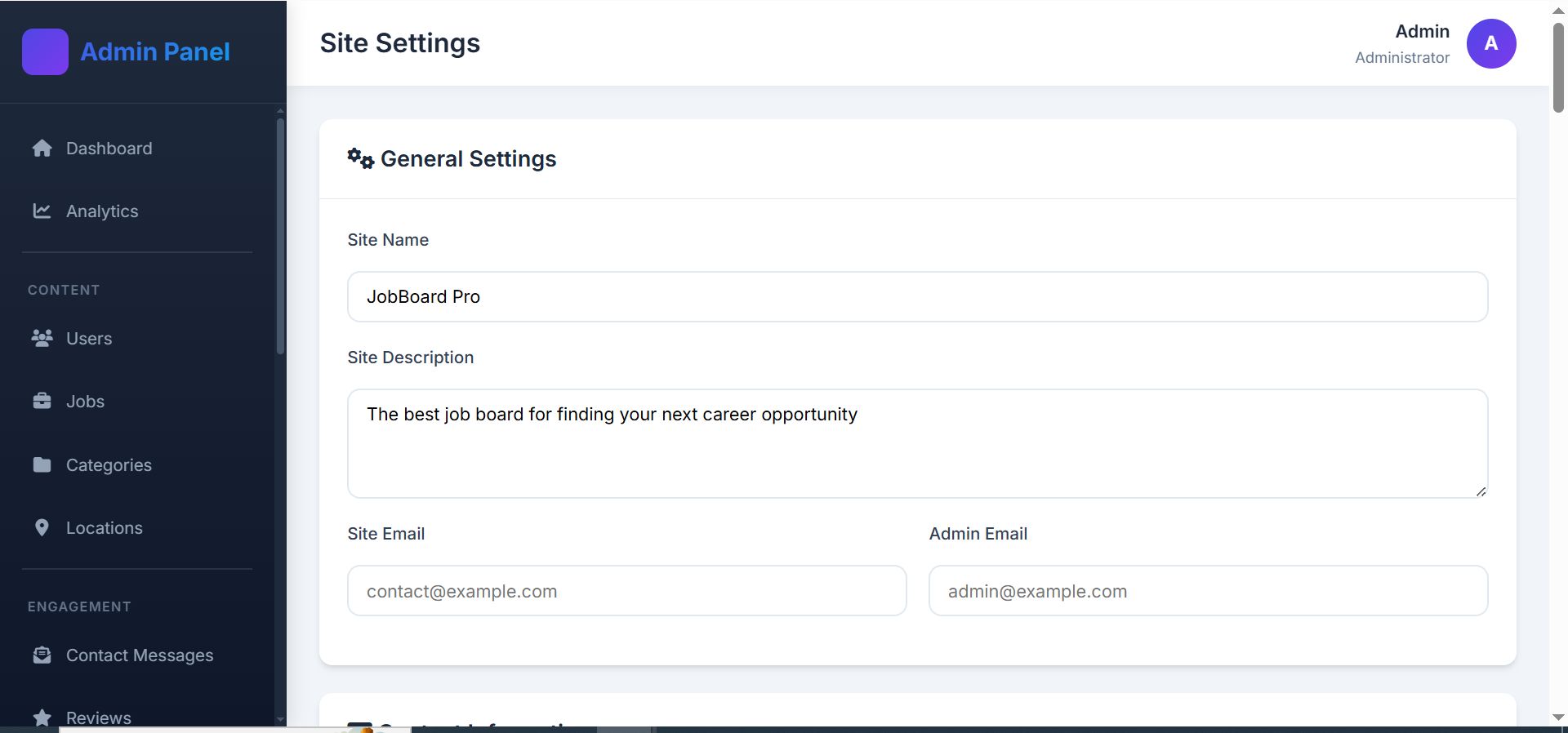 Setup: Update site info, theme, menus, SEO, enable career tools, and add categories/locations.