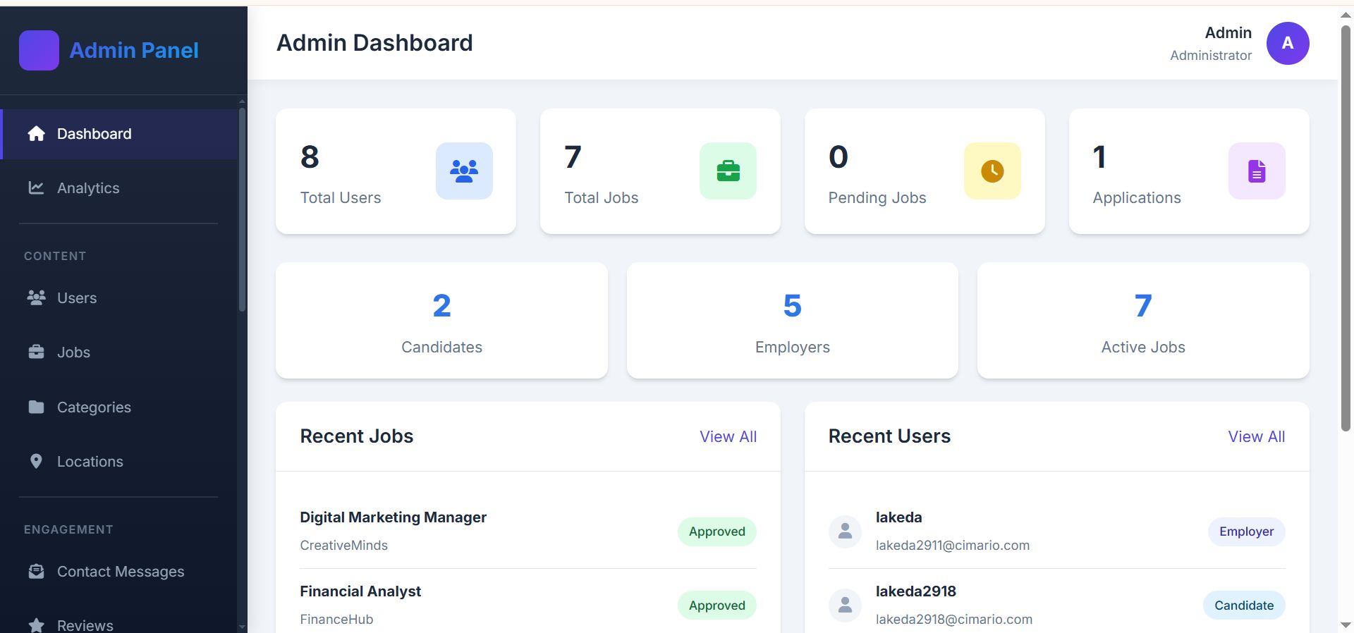 - Admin: full control over users, jobs, content, tools, analytics