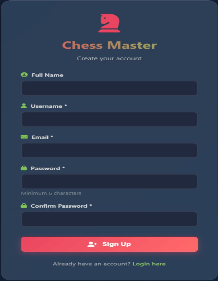 • Sign up – New users can create an account (username, email, password).