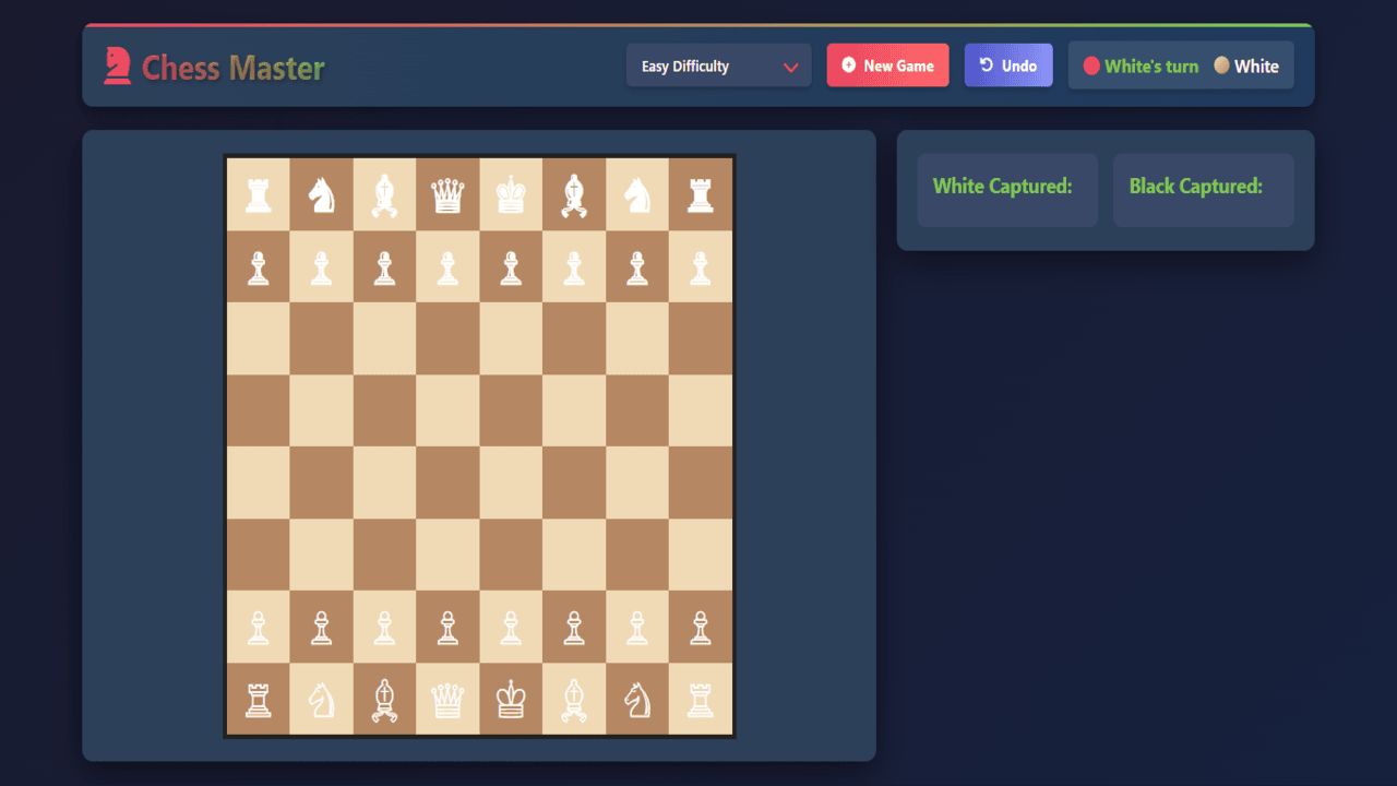 • Full chess rules – Standard piece movement, check, checkmate, stalemate,