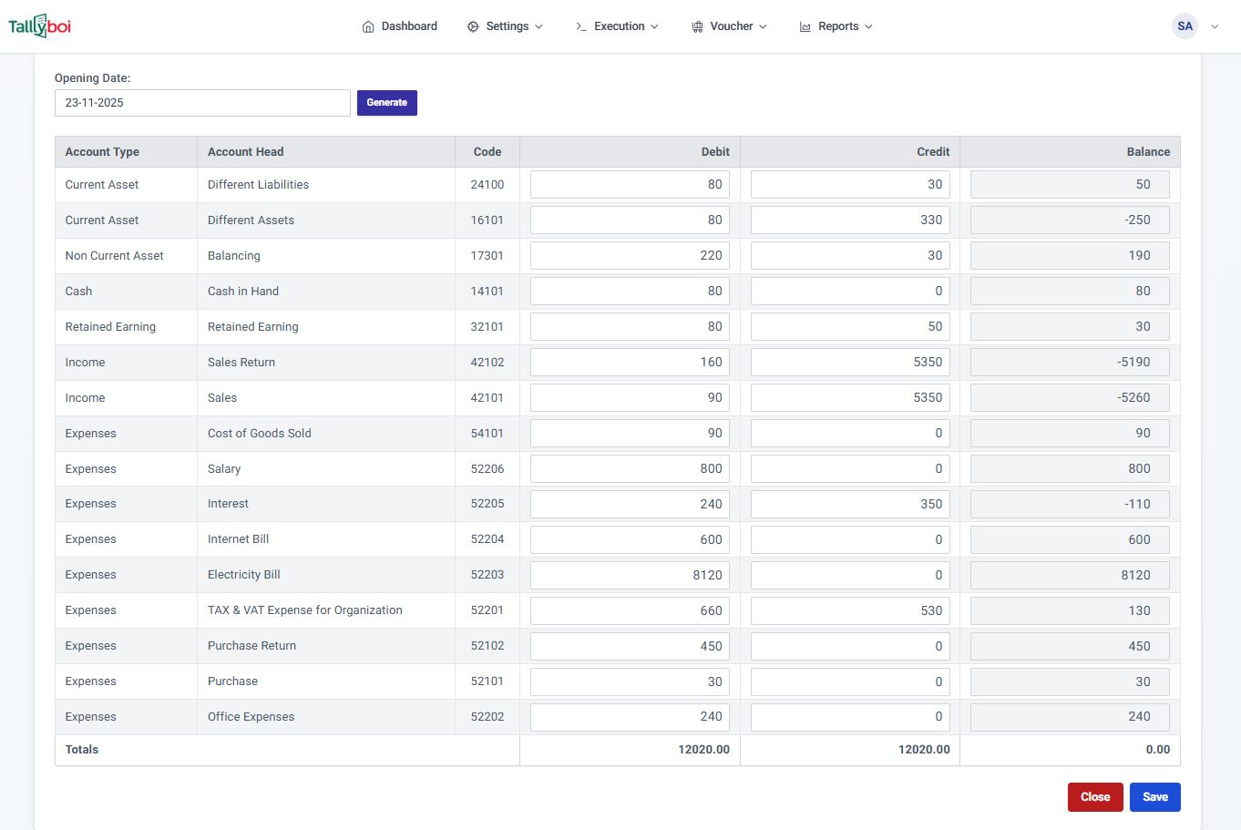 - Multi-type voucher system (Debit, Credit, Journal, Contra)