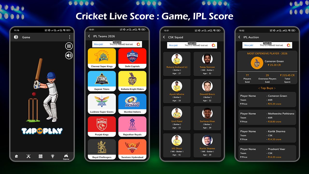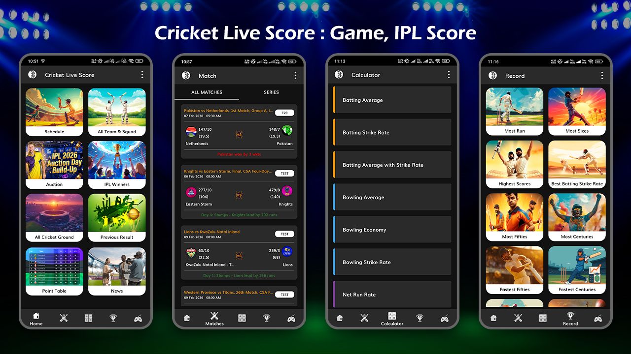 📸 "Stay updated with live cricket scores, IPL updates, records, and even play a cricket game – all in one powerful app made for true cricket fans"