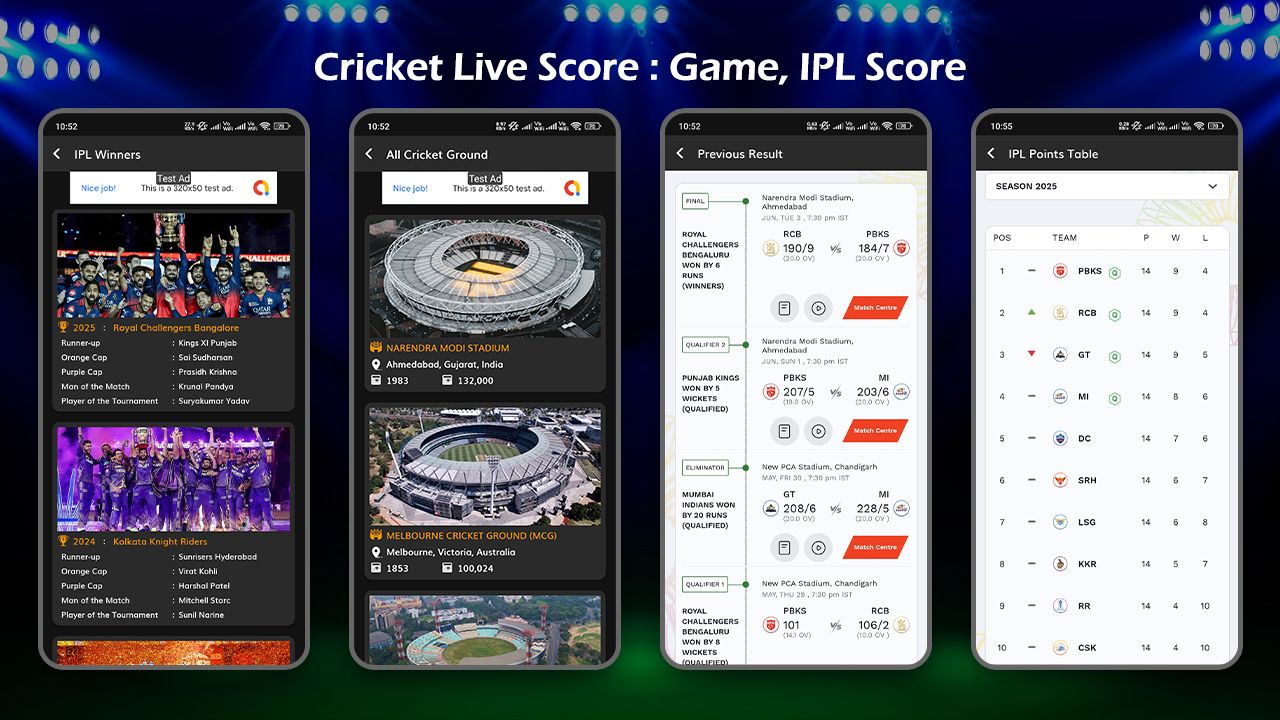 Live Cricket Score, IPL updates, Team Squad, Points Table, Cricket Calculator & Fun Game in o...