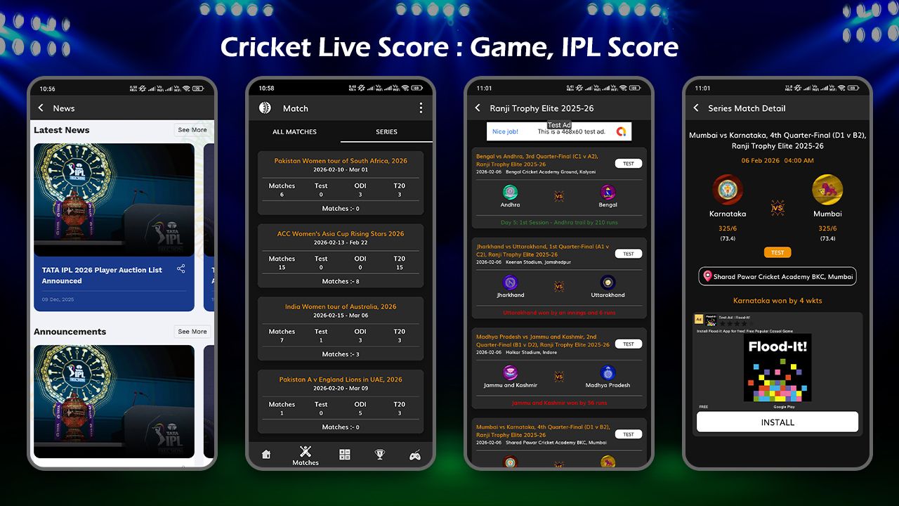 | Tags | android, live score, live match, test match schedule, all point tables, upcoming match list, scoring by overs, full score cards, all match results, match odds, player statics, match info, pitch & venue, match highlights, live cricket score |