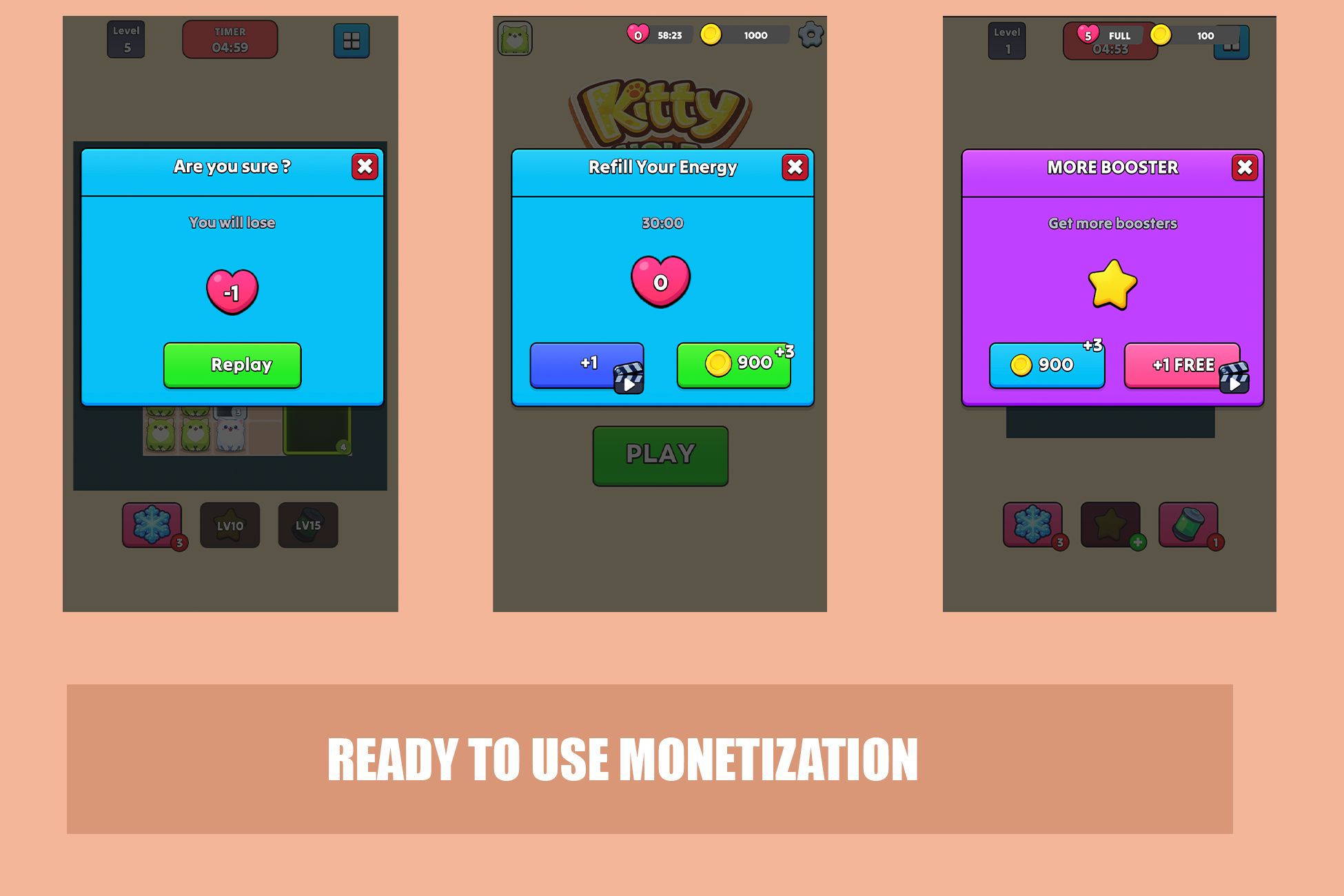 Designed for developers who want a ready-to-publish mobile game with full monetization system.