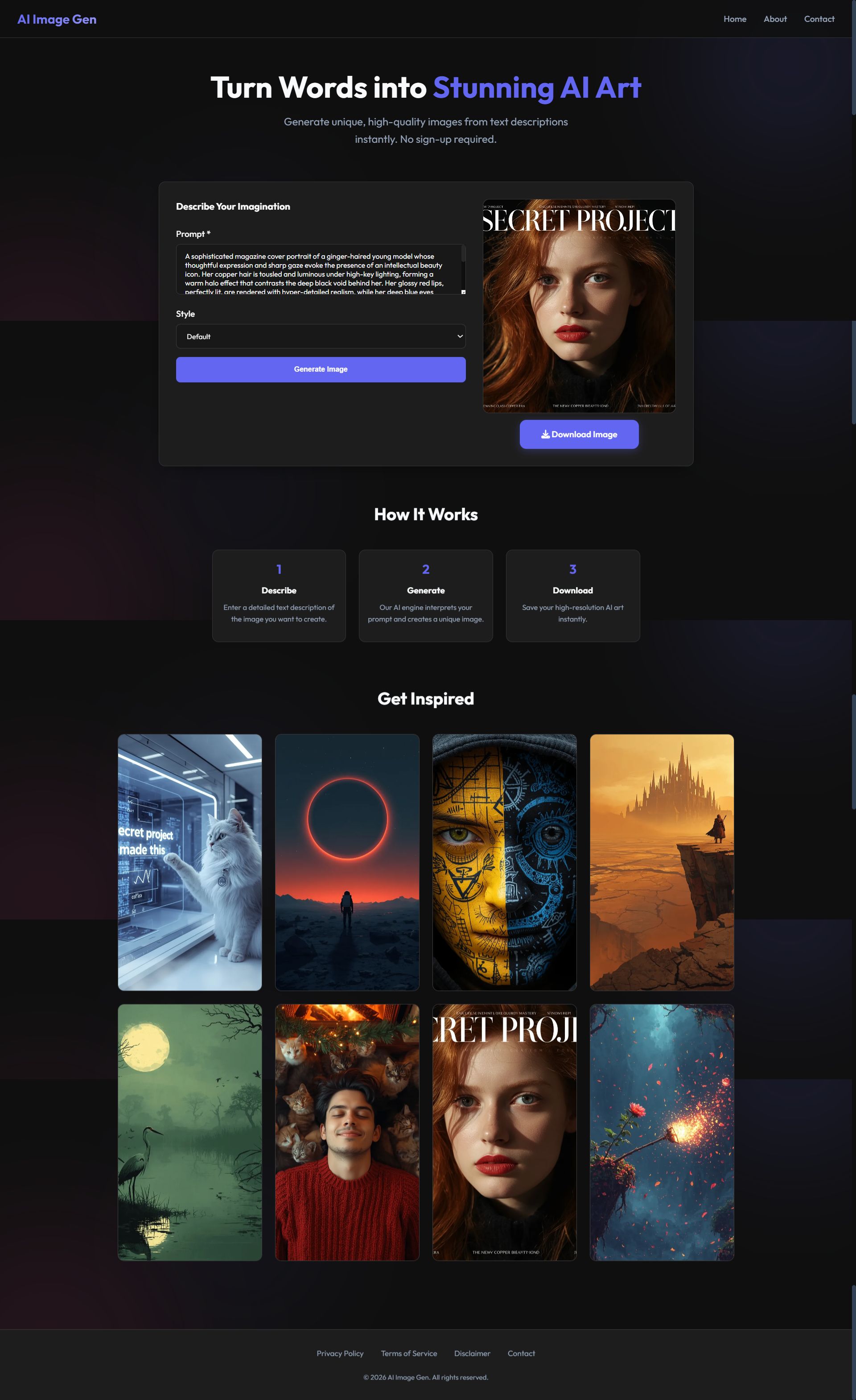 Create unlimited AI images for free! No paid APIs required. Easy-to-setup PHP script.AI Image Generator - PHP Script