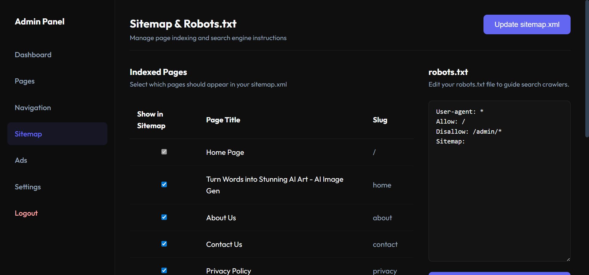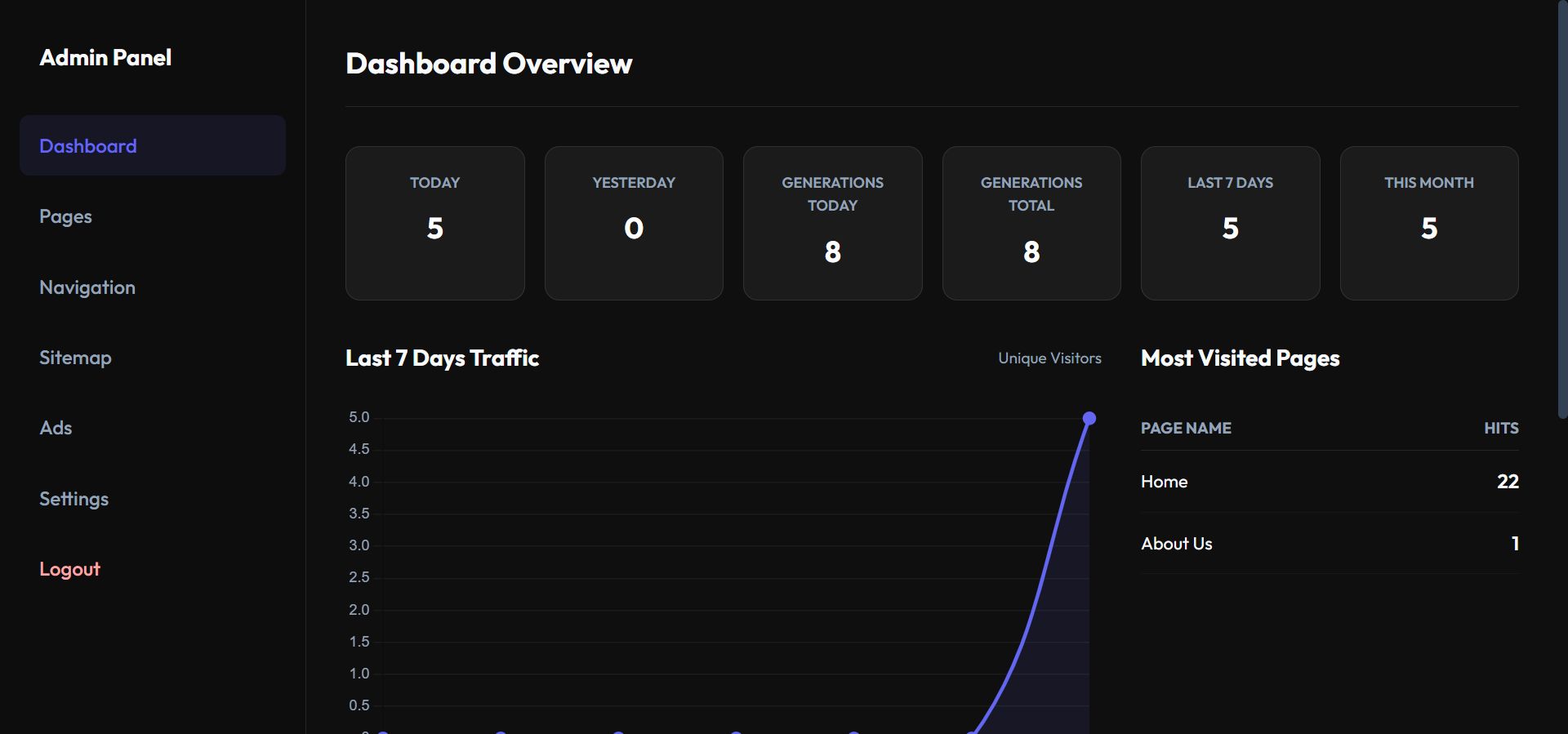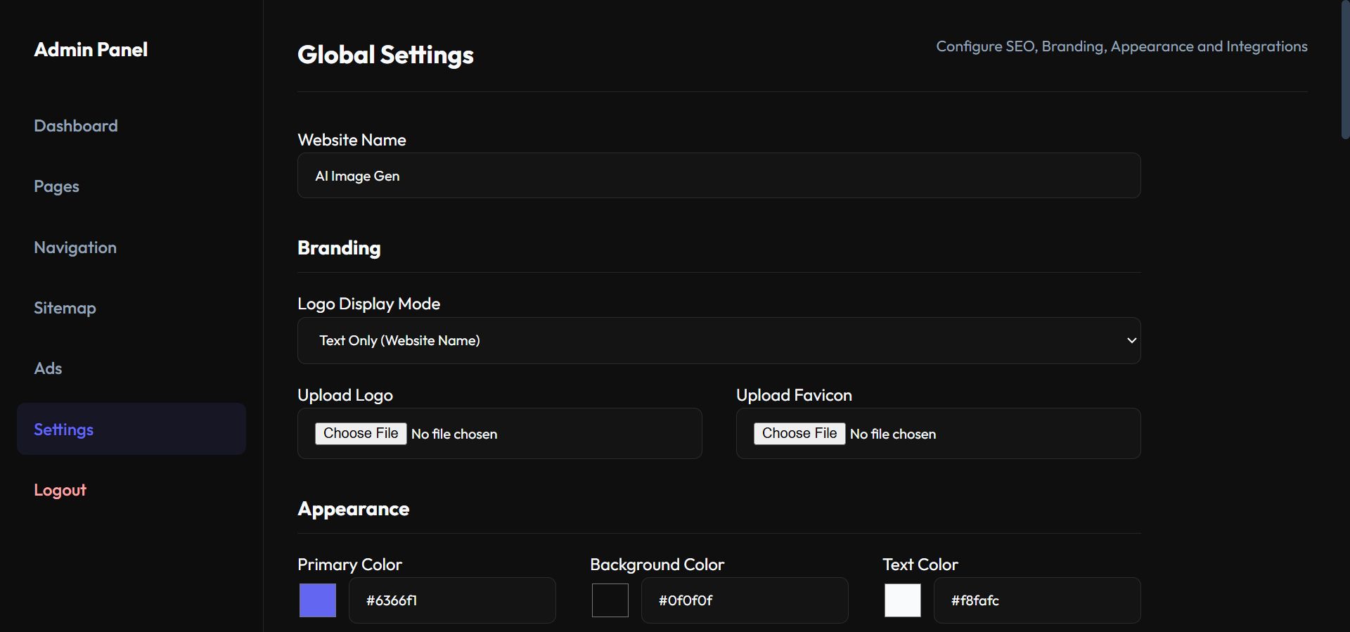 - Advanced Admin Dashboard (Manage settings, SEO, and more)