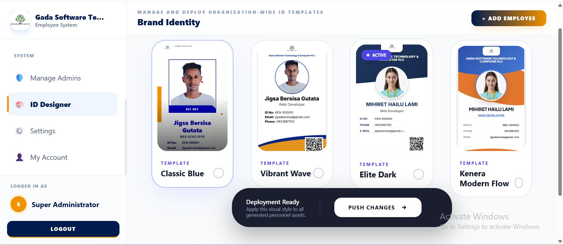 | Tags | document management system, hr software, hr management system, employee database, identity verification, employee id system, qr verification system, id card generator, laravel hr system, staff management system, employee profile system, id card printing, admin dashboard laravel, qr code id, employee records |