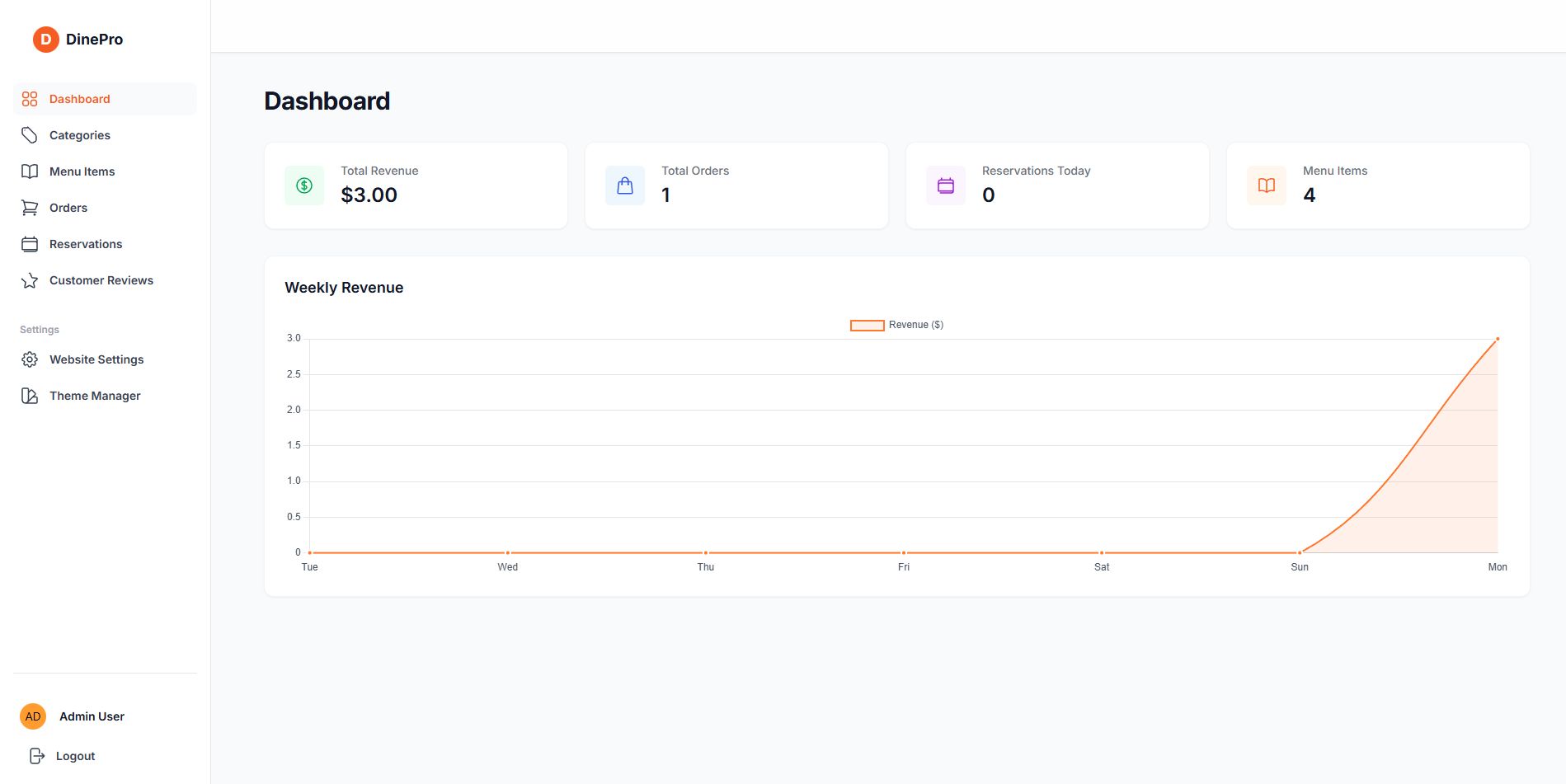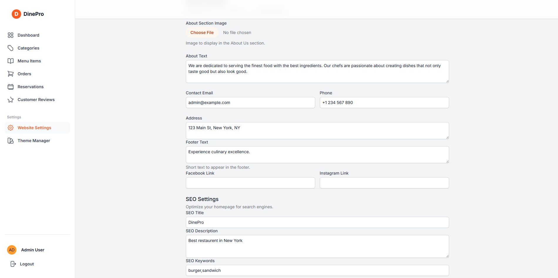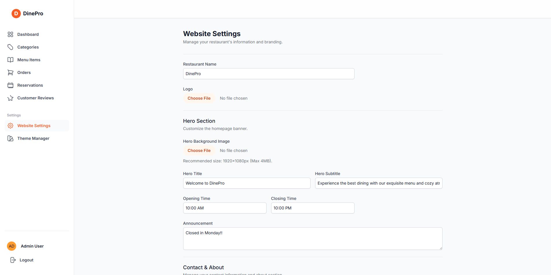 - Demo admin panel link: https://dinepro-1.onrender.com...(Use same login credential).