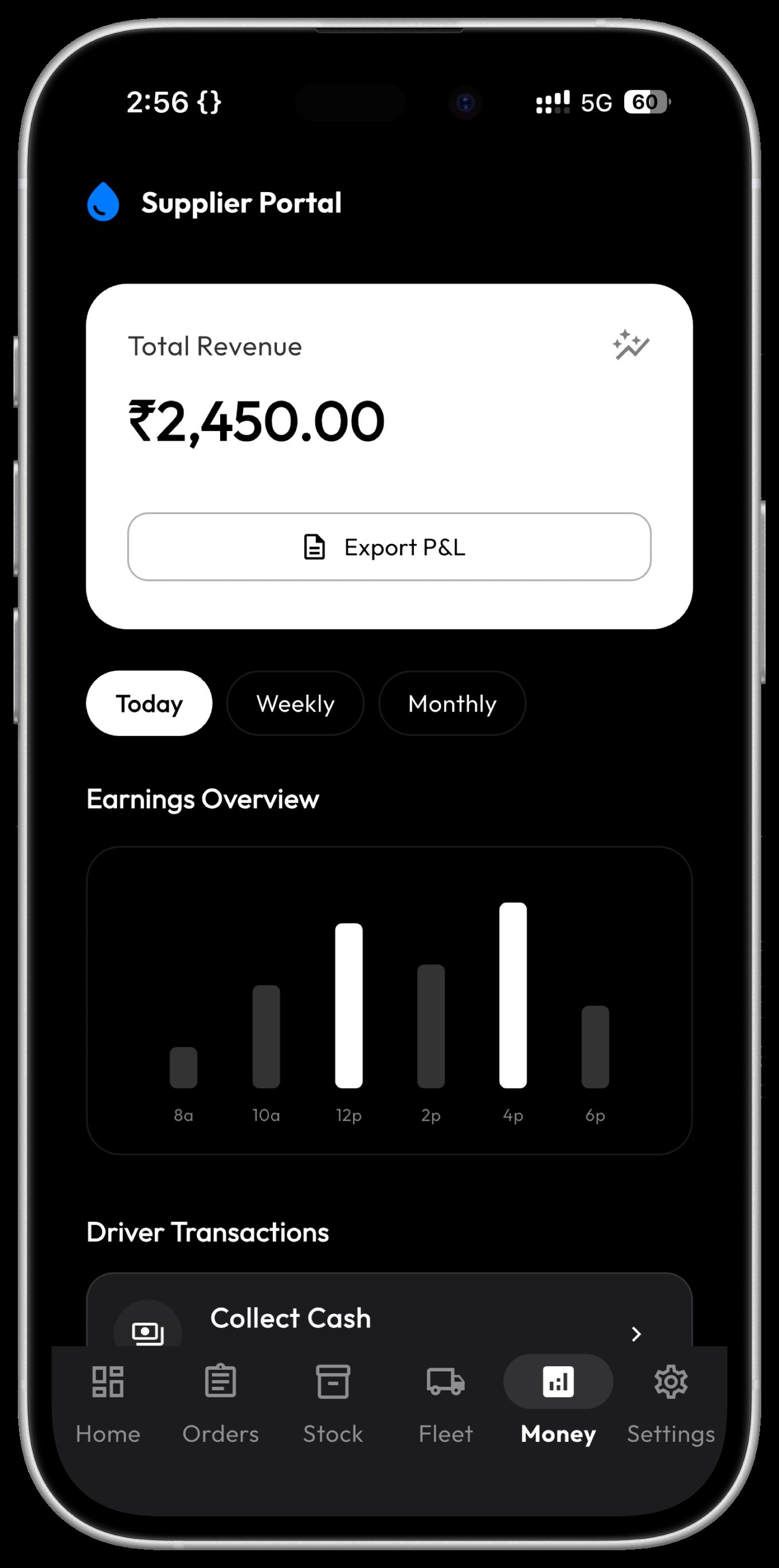 Full operational control panel for suppliers.