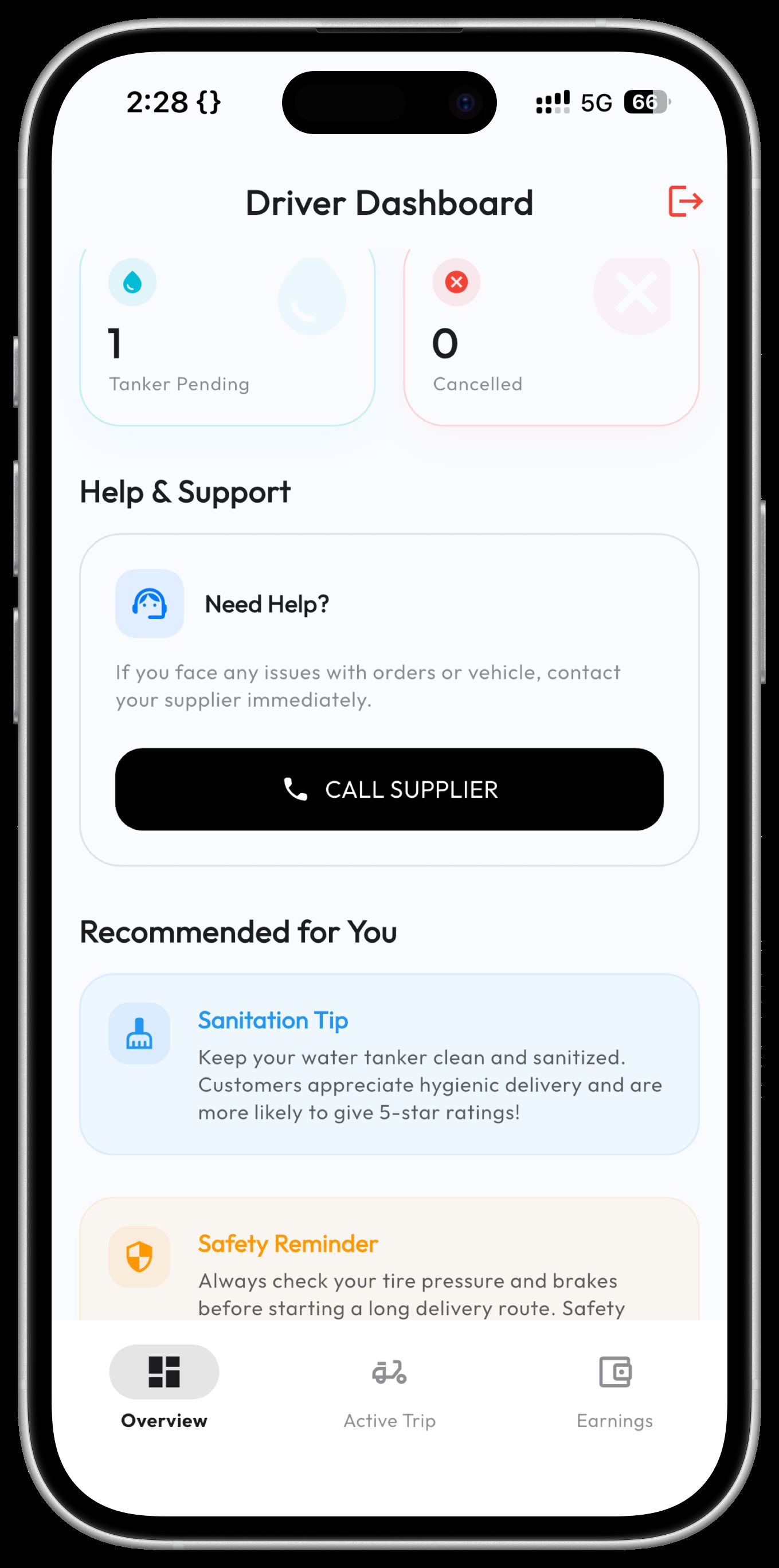 - Role-Based Access: Secure login determines if the user is a Consumer, Supplier, or Driver.