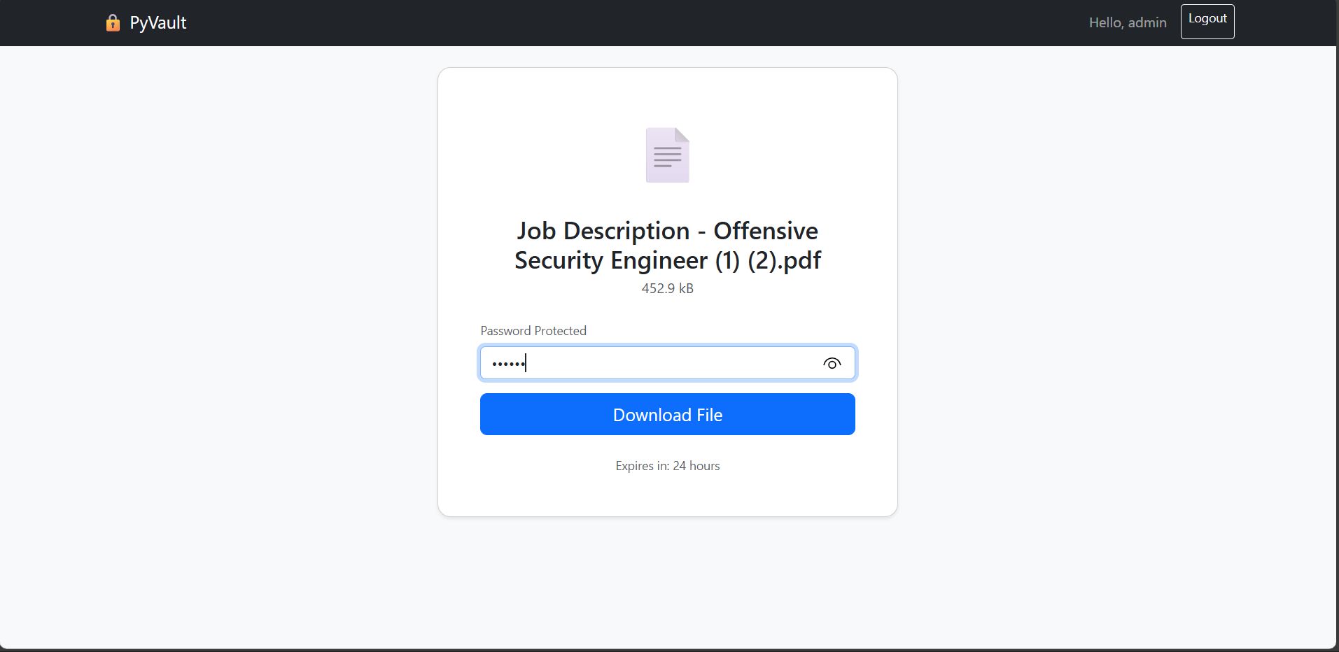 PyVault is a professional, self-hosted file sharing application built with Python Flask. It allows you to create your own secure alternative to WeTransfer or Dropbox, keeping your files private and under your control.