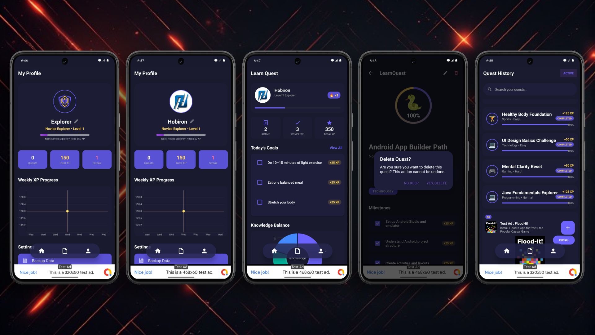- Banner Ads: Consistently present in Home and Profile screens.