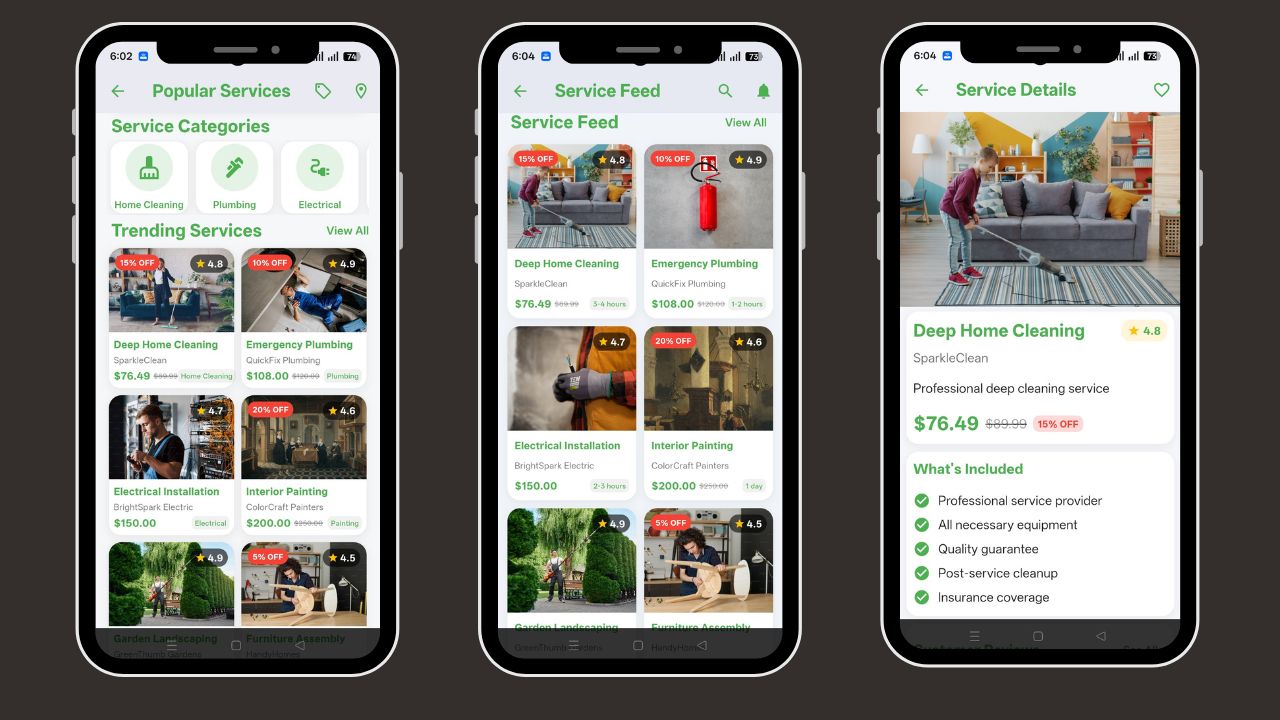 Launch your home services business faster with a complete, professional-grade app solution. Our Home Services Finder Flutter UI Kit is the ultimate toolkit for building a powerful platform that connects users with trusted local professionals. Whether it's plumbing, cleaning, electrical work, or landscaping, this UI kit provides every screen and feature you need to create a seamless experience for both customers and service providers.