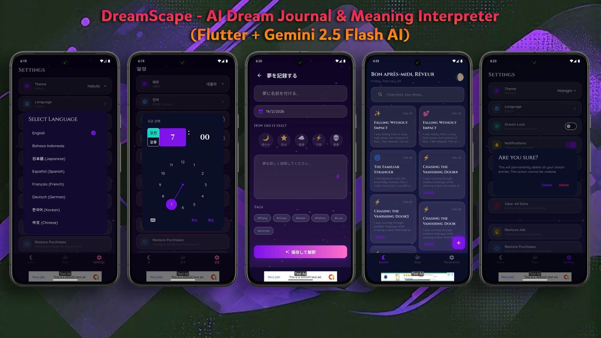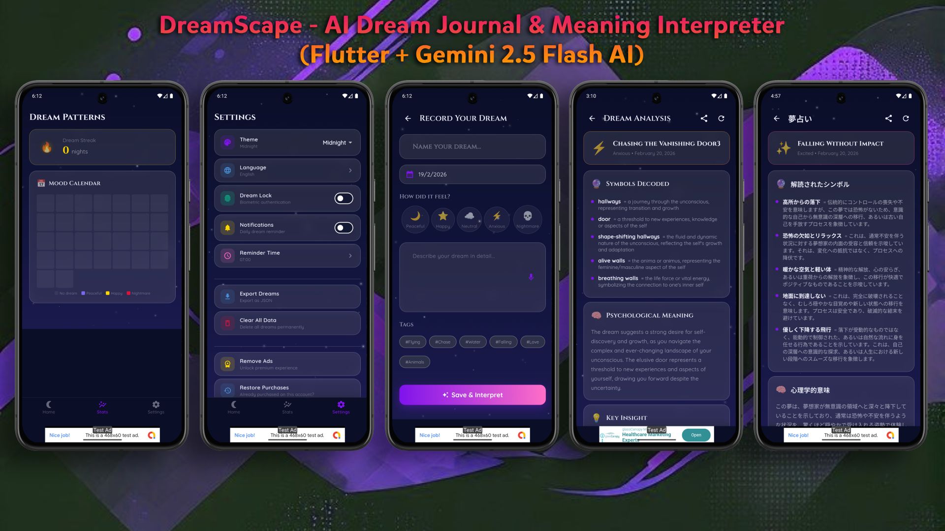 | Tags | admob, in app purchase, sleep tracker, flutter source code, dream diary, flutter dream journal, ai dream interpretation, mindfulness app, gemini ai app, diary with lock, biometric journal, multi language app |
