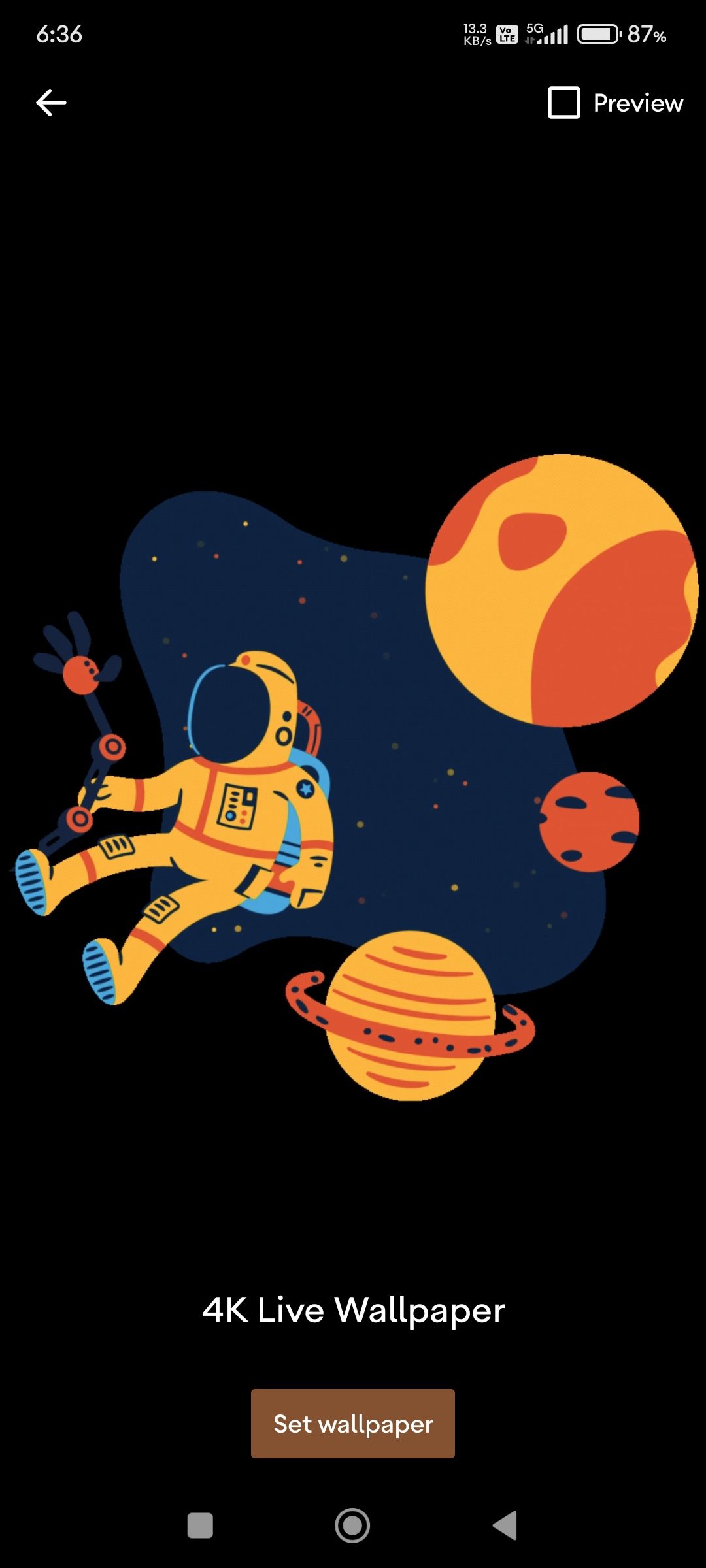 Designed with performance and efficiency in mind, Live 4K Wallpaper runs smoothly without draining your battery or slowing down your phone. Enjoy vivid visuals without compromising your phone's performance.