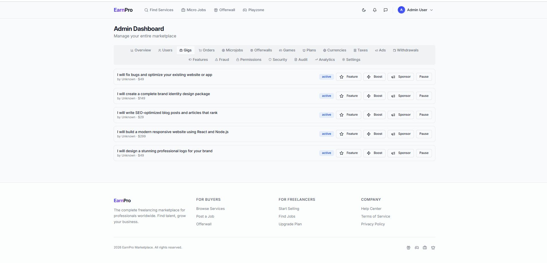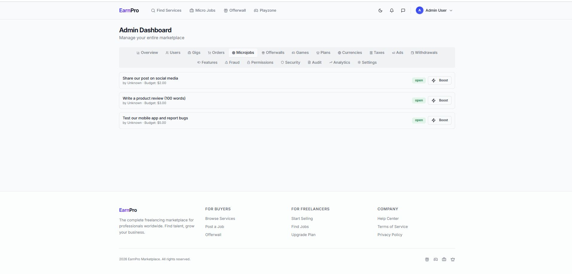 EarnPro Marketplace – PHP SaaS EditionEarnPro Marketplace – PHP SaaS Edition