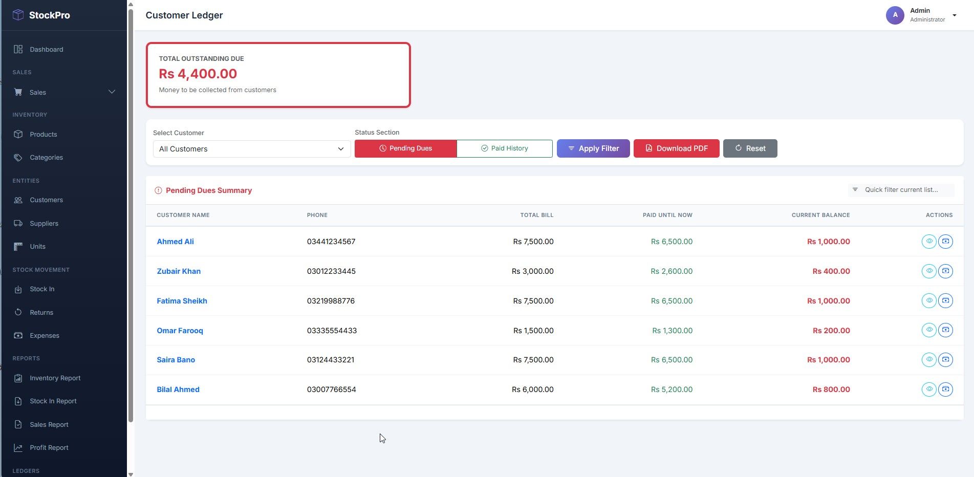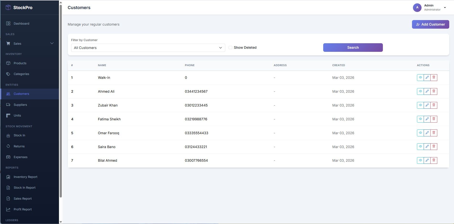 StockPro is a powerful and easy-to-use POS & Inventory Management System designed for retail stores and small businesses. Manage sales, invoices, stock, expenses, and customer ledgers with real-time reports and a user-friendly dashboard.