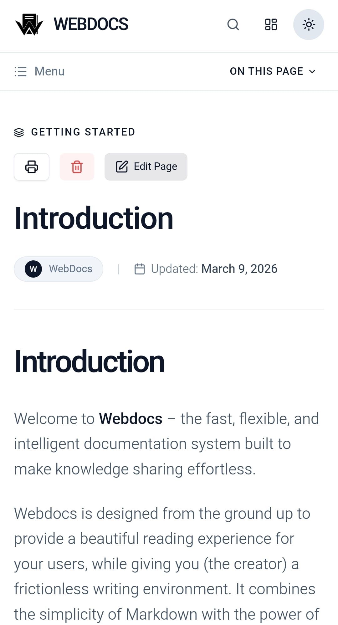 Whether you are documenting an API, building a company wiki, or creating a tutorial site, Webdocs provides the speed and simplicity you need to focus on your content.
