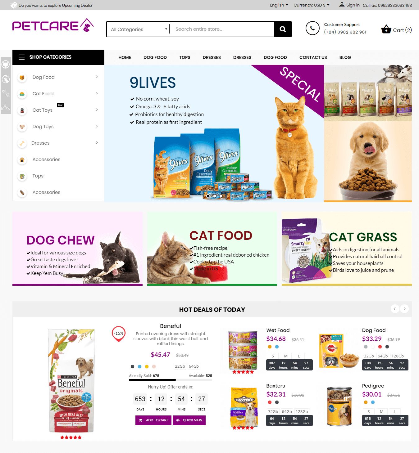 Pets and Animals Care Store theme is produced as the glorious and elegant online store for pet, animal, food and multi store. It not only helps improve website usability and sales but also makes your store friendly and more professional!
