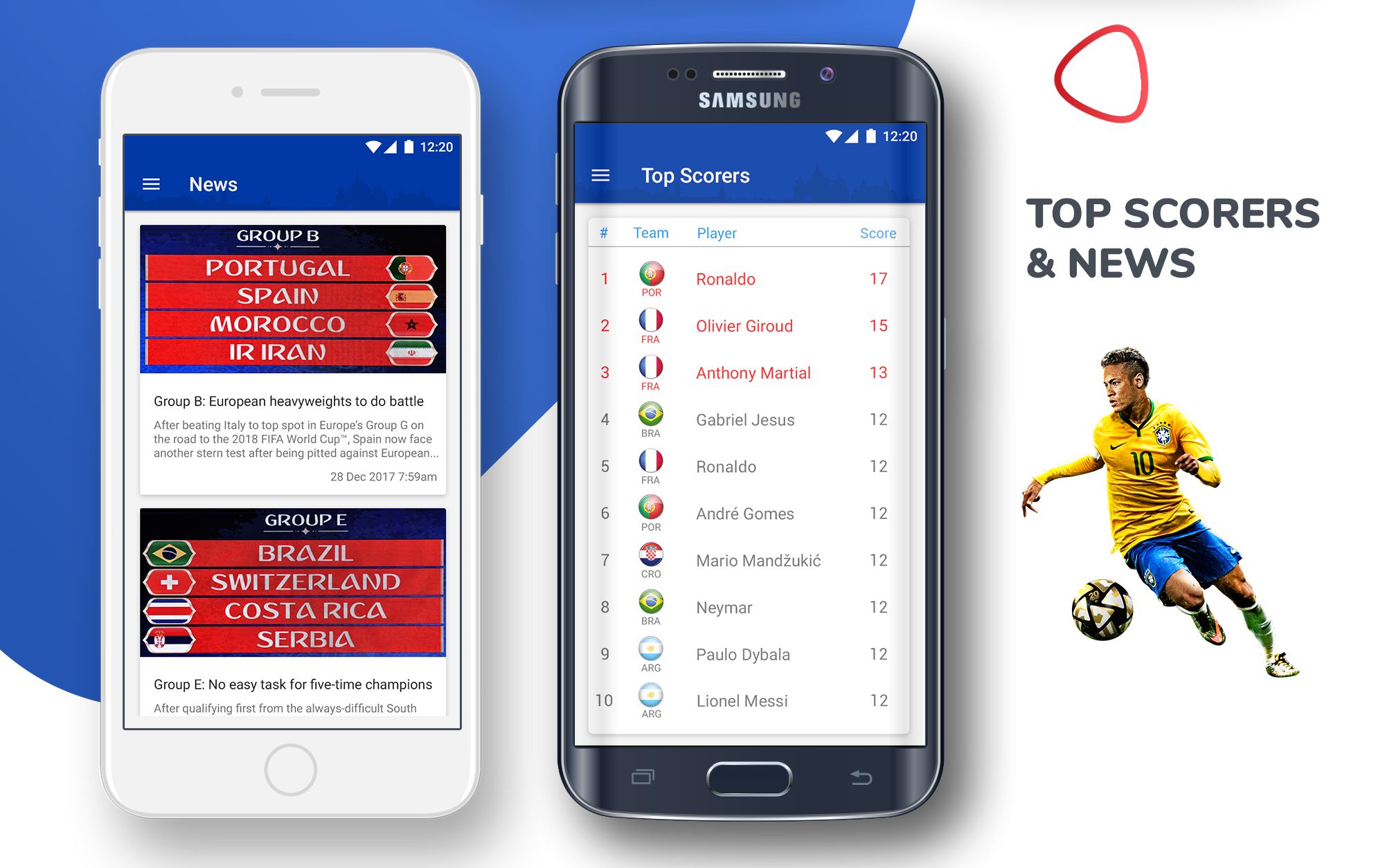 - Top scorers: this screen will update the latest top scorers