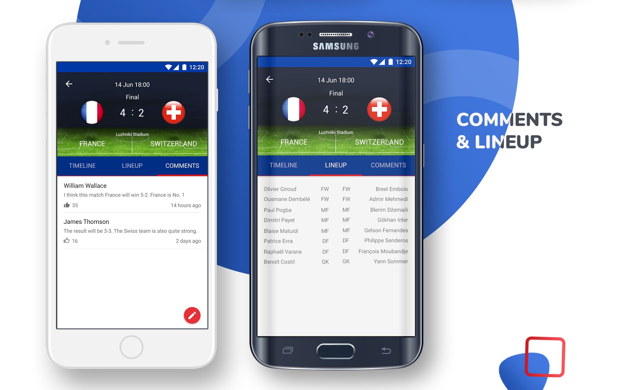 - Match live scores: user can see detail timeline for each match. Live scores will be automatically updated during the match.