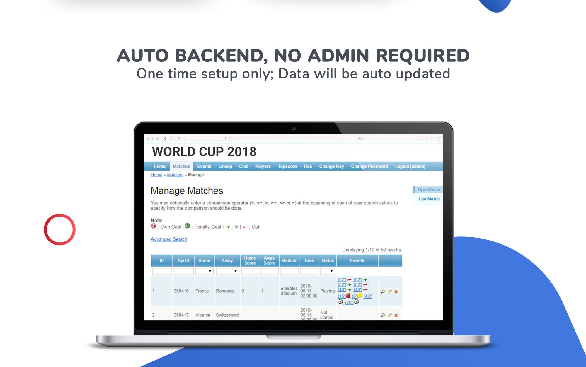 - The backend will automatically get data from xmlsoccer.com via cronjob.