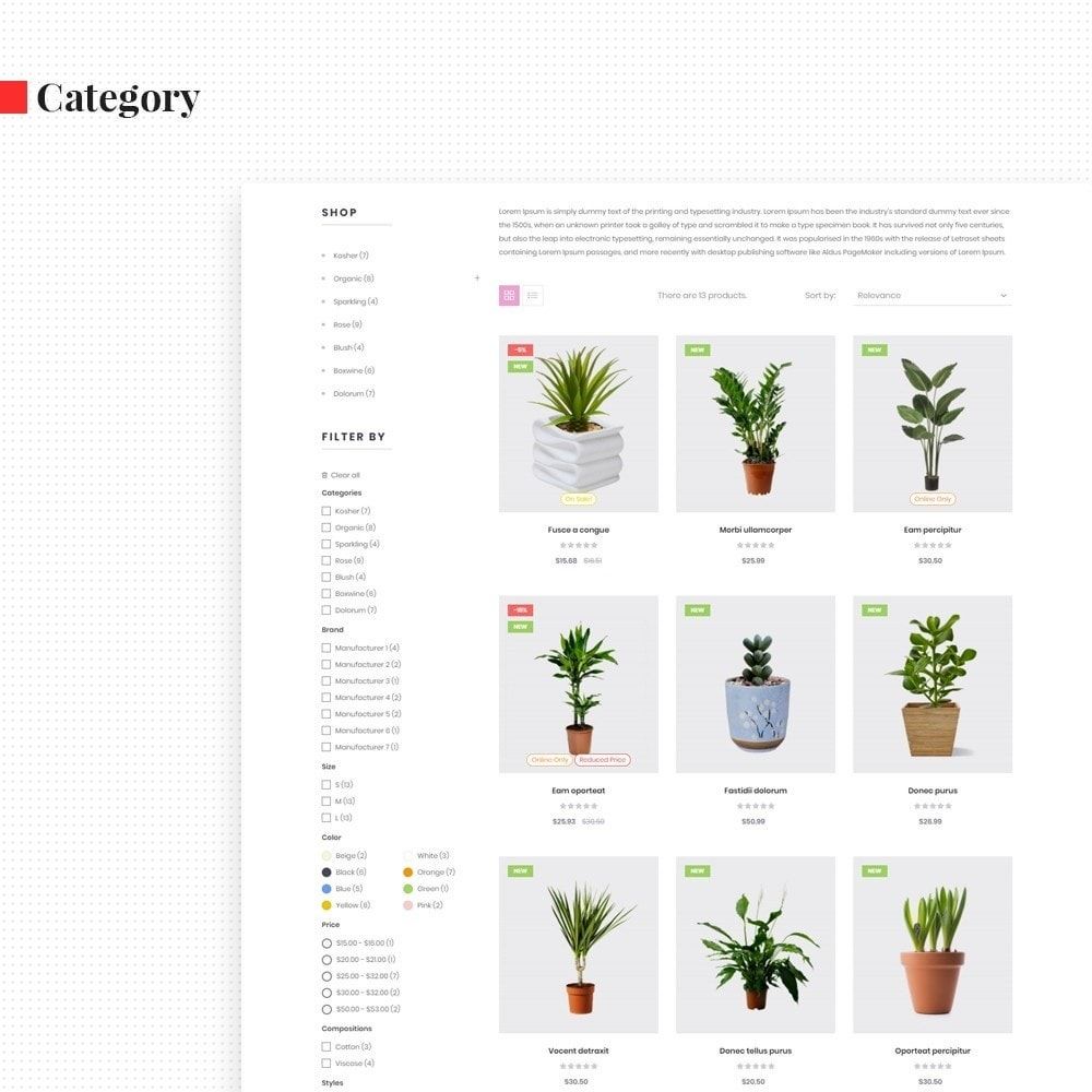 Leo Florist for Bonsai, flower pot, bonsai pot is a minimal Prestashop template. Leo Florist is 100% responsive to be able to nicely displayed and completely customizable on any screen sizes like desktop, laptop, tablet, and mobile phone.