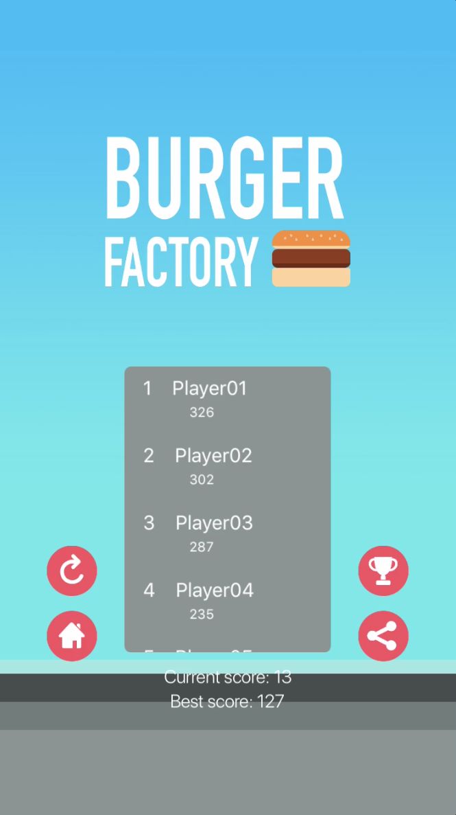Create your burgers at this burger factory! It’s endless type game, every time you get less time to finished your burger!