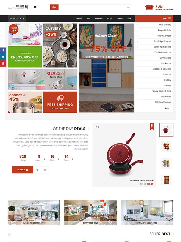 Funi is the Furniture eCommerce OpenCart theme for any decoration or interior store. By providing a lot of functional extensions such as Mega Menu with multi-columns (sticky Menu – Fixed menu), Visual Page Builder, OnePage checkout, attractive homepage slider with many smooth effects, multi-language, multi-currency, image popup view and much more, super faster speed to enhance the customers’ experiences.