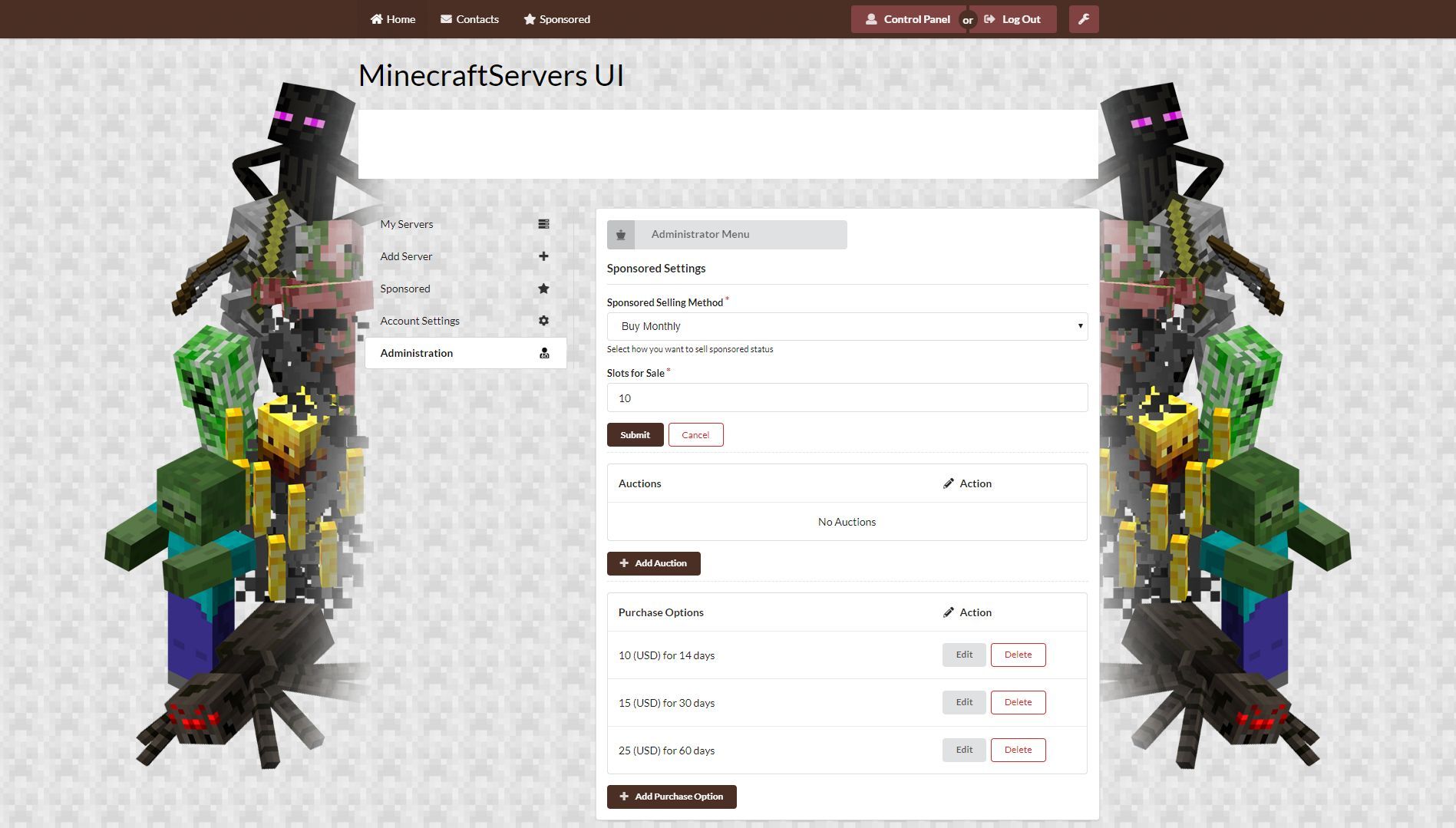 Minecraft servers list (CMS) is TOP quality, features rich Minecraft servers listing control management system. Which allows you to own and maintain premium quality minecraft servers project in minutes with no programming knowledge at all.