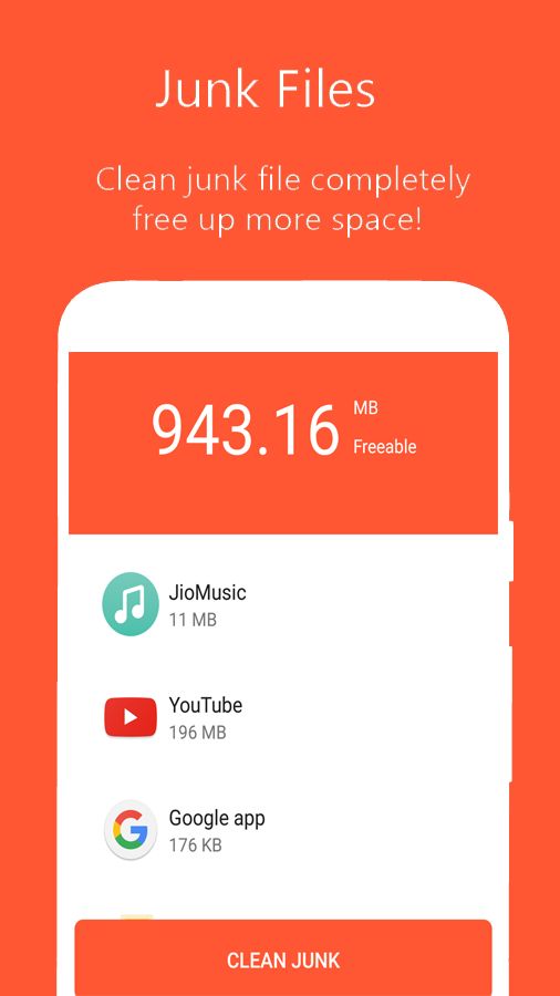- Junk Cleaner: Scan and remove junk files automatically. Clean junk files, free up storage space and boost phone speed!