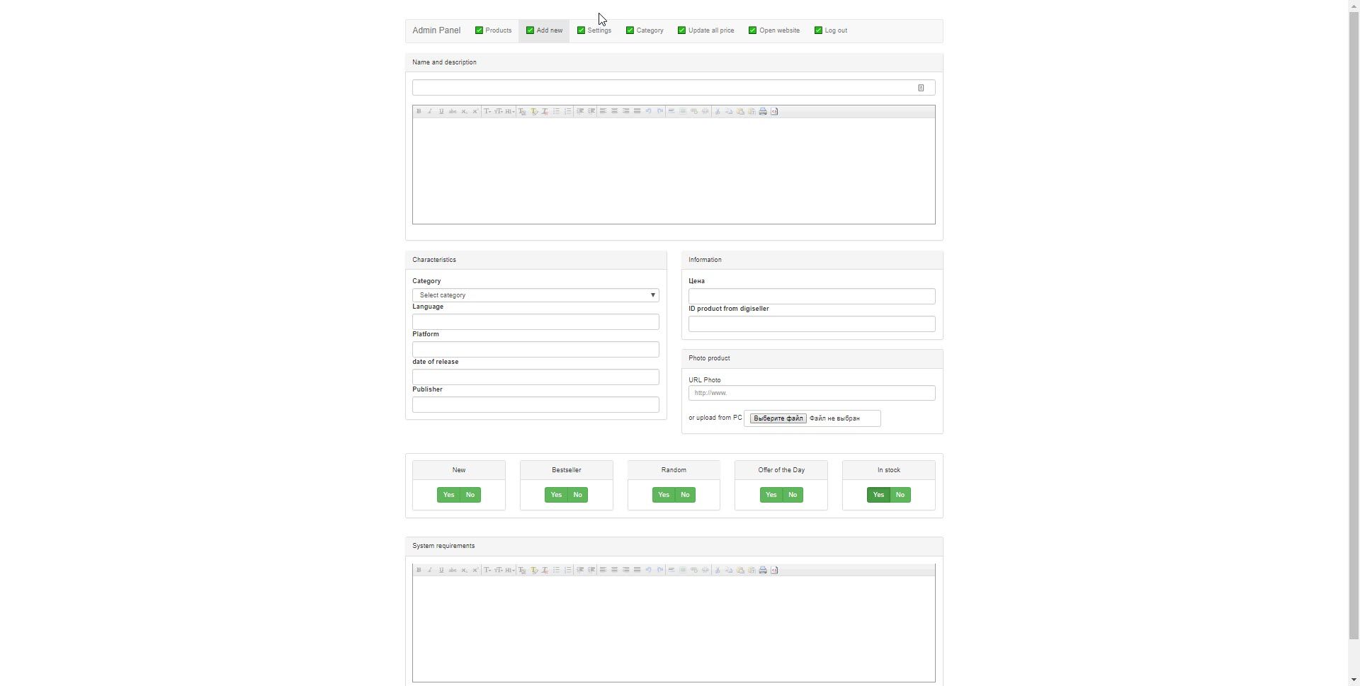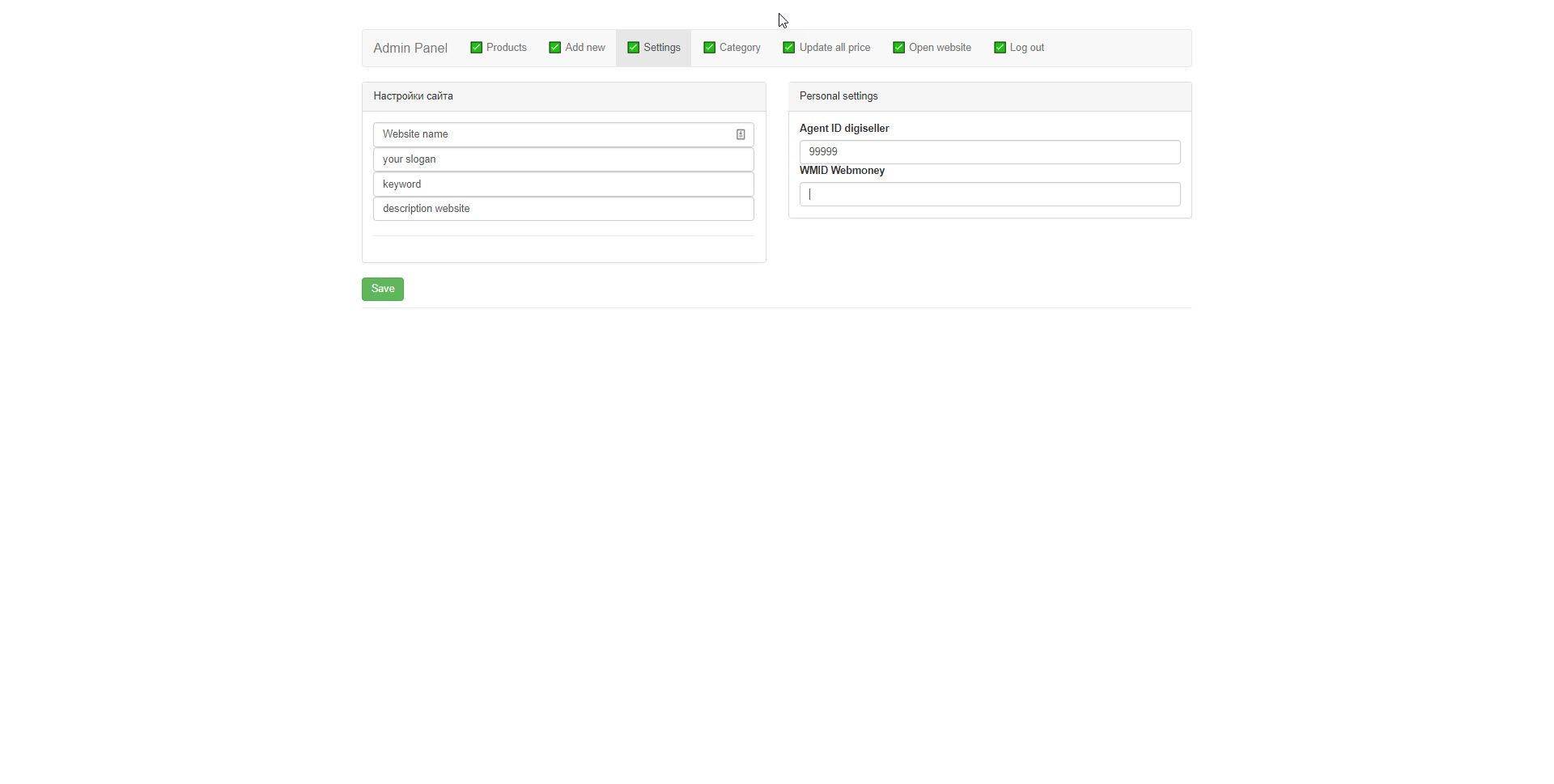 Admin panel