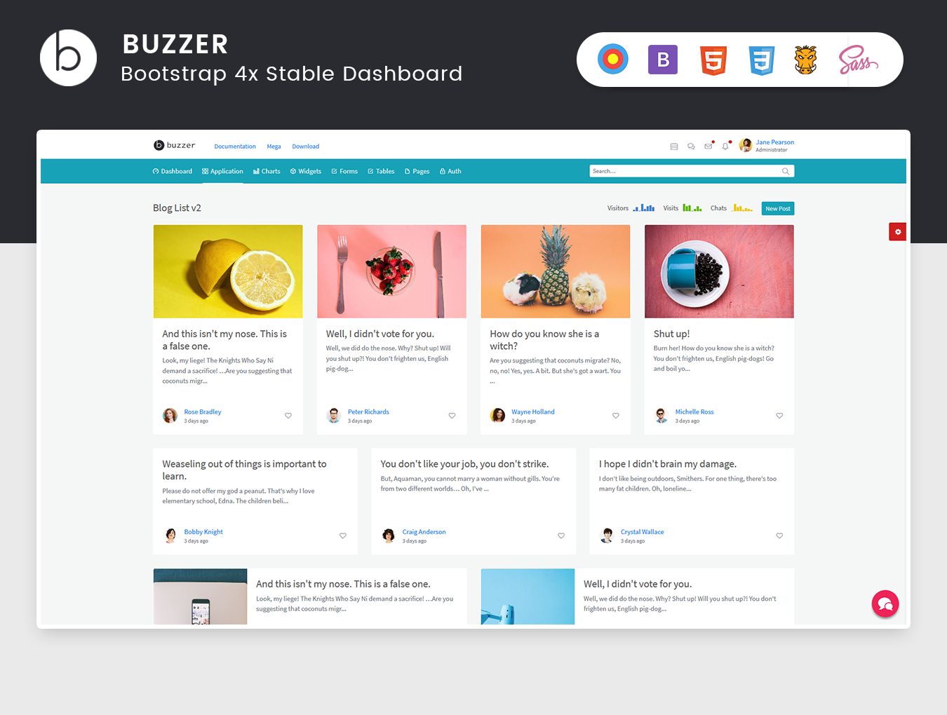 buzzer is a popular open source WebApp template for admin dashboards and admin panels.Buzzer Ultimate Bootstrap 4 Admin and Ui Kit