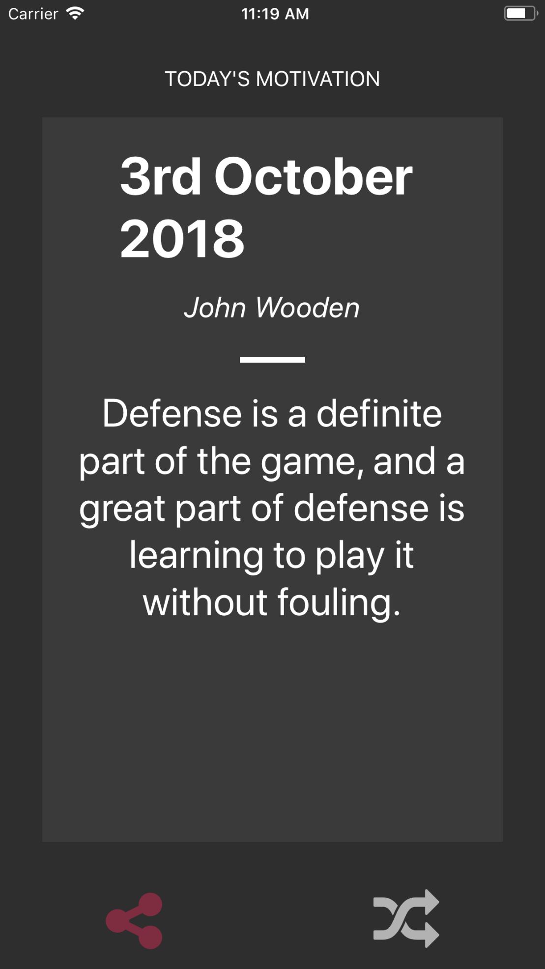 Daily Motivation is a mobile app based on React Native. It follows re-usable component structure and these components then can be used in different applications. It also uses and supports 3rd party API for inspiring quotes and has share feature enabled.